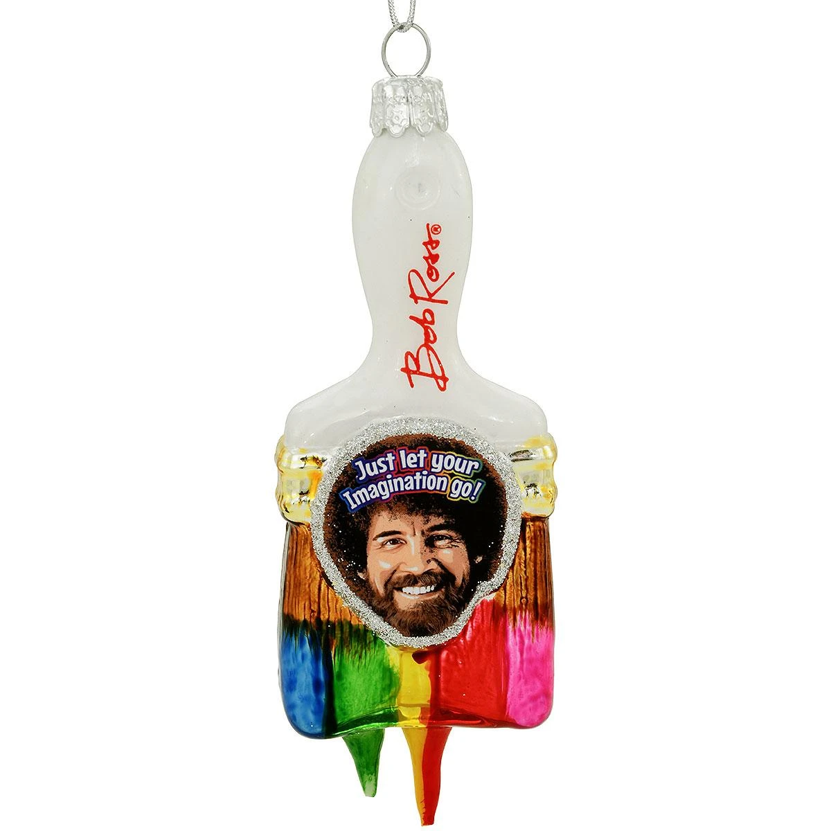 Add a “splash of color” to your life with this fun tribute to the late-great artist Bob Ross! Dripping with inspiration and vibrant drops of paint, our white paint brush ornament is adorned with Bob Ross’ stylish signature along with an image of the artist and his iconic quote: “Just let your Imagination go!” This “masterpiece” of glass and resin measures 4½” tall and makes a great gift for fans of Bob Ross and his classic PBS show “The Joy Of Painting” as well as his new internet following! Ready for your happy tree or display in studio or elsewhere. ©Bob Ross Inc.