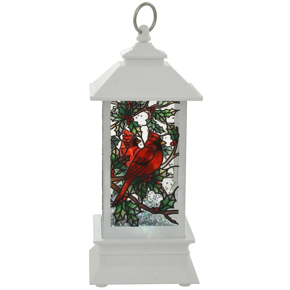 A festive cardinal and holly design graces all four windows of this beautiful mini white shimmer lantern. Crafted of plastic, 5″ water lantern is filled with prismatic glitter that swirls de-light-fully with a gentle shake of your hand like a water globe. Lighted decoration is battery operated with convenient on/off switch and requires two CR20322 batteries, included.