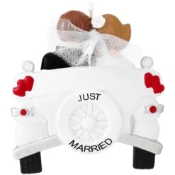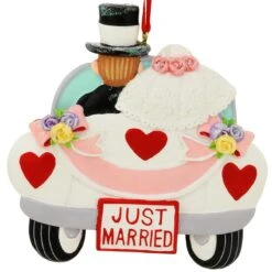 Personalized Just Married Couple In Car With Flowers Resin Ornament