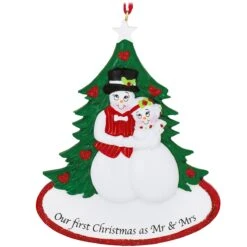Personalized Our First Christmas As Mr And Mrs Snow Couple With Tree Ornament