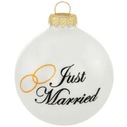 Personalized Just Married With Rings White Opal Glass Ornament