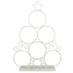 Artfully designed to showcase six of your favorite ornaments, this stylish Bronner’s exclusive chrome ornament tree stand is crafted of metal with a highly reflective silver finish. With an imaginative Christmas tree shape complete with star on top, this 19¼” tall x 13½” wide x 2½” deep chrome display stand features six circular areas equipped with inconspicuous hooks ideal for displaying ornaments up to 3″ tall.