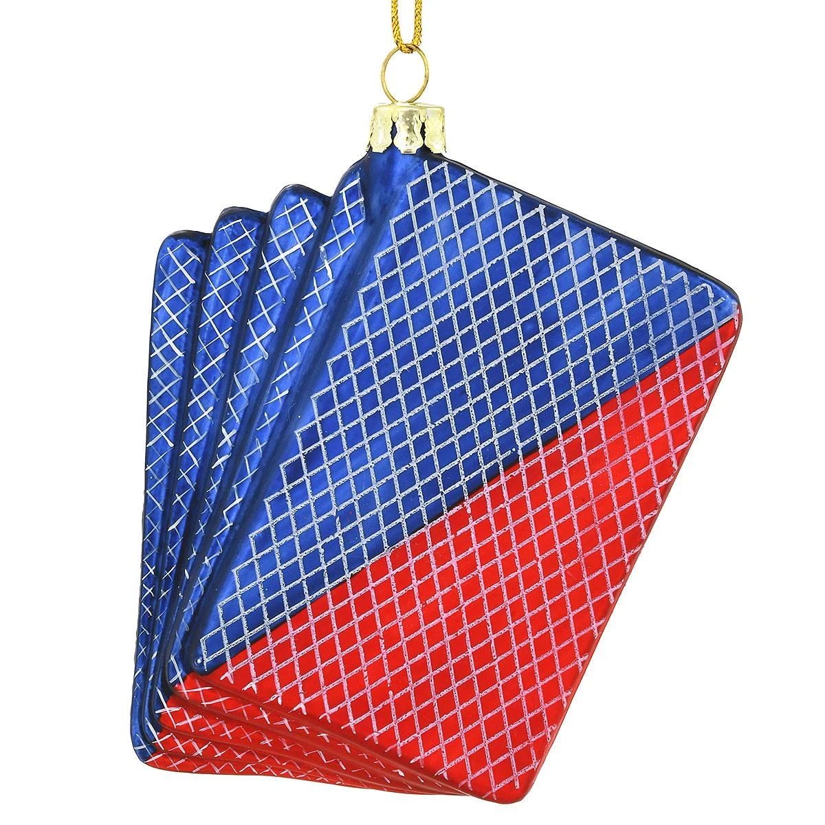 It’s hard to put on a poker face when you’re holding a royal flush in hearts! Whether you enjoy playing video poker at the casino or gathering around the card table with a group of friends, this fun keepsake is sure to deliver a “great deal” of enjoyment! Shimmering with bright glazes of red, white, and blue, our 3¾” tall deck of cards ornament is artfully rendered in glass and comes ready to hang with a gold cord.