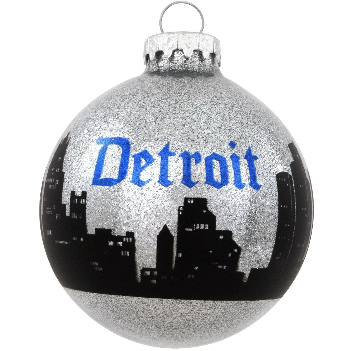 Crafted in Hungary exclusively for Bronners, our 3″ round Detroit skyline ornament seamlessly blends the famous architecture of Michigan’s most populous city into a stunning keepsake you’re sure to treasure! An interior coating of silver glitter shines through the clear glass ornament like an infinite number of night stars over the teeming skyline, which makes this sparkling ornament a perfect memento for any visitor or resident of the “Motor City.”