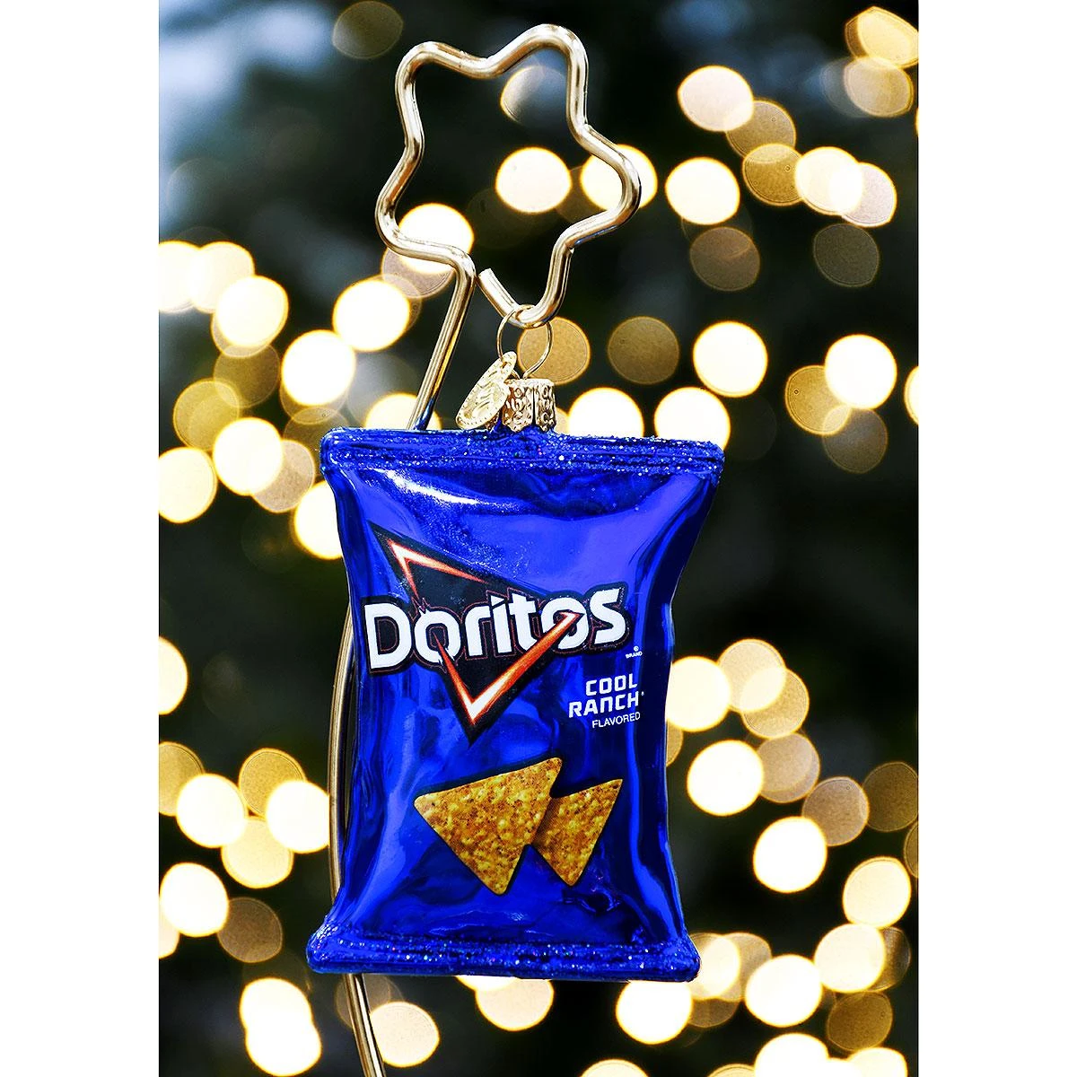Does your tree need a “cool” snack?! Doritos® has got your back! Crafted of glass, this 3” “bag” of Cool Ranch® Doritos®, designed by Old World Christmas©, has all the delicious details of your favorite flavorful corn chips.