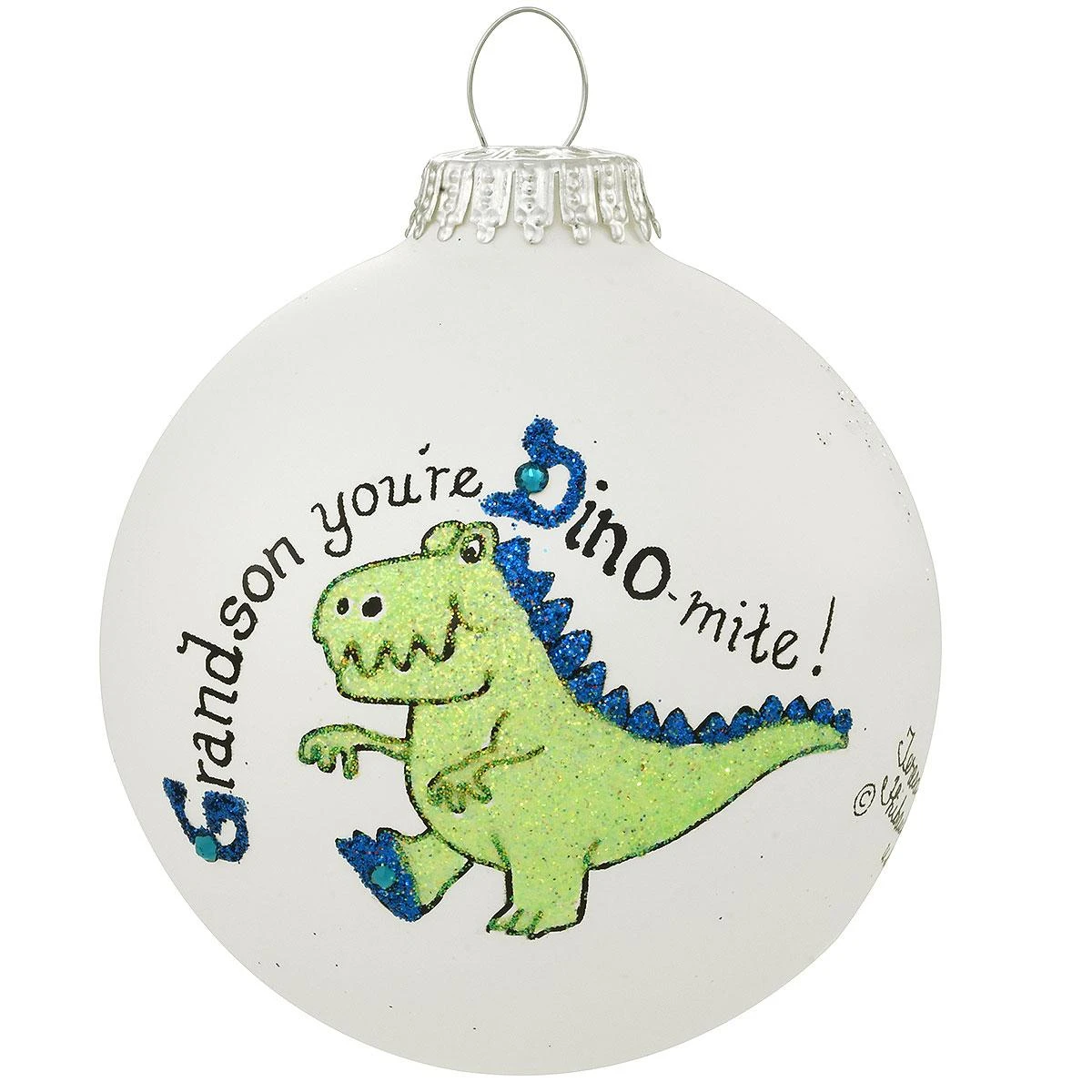 Grandson You’re Dino-mite Heart Gifts Glass Ornament