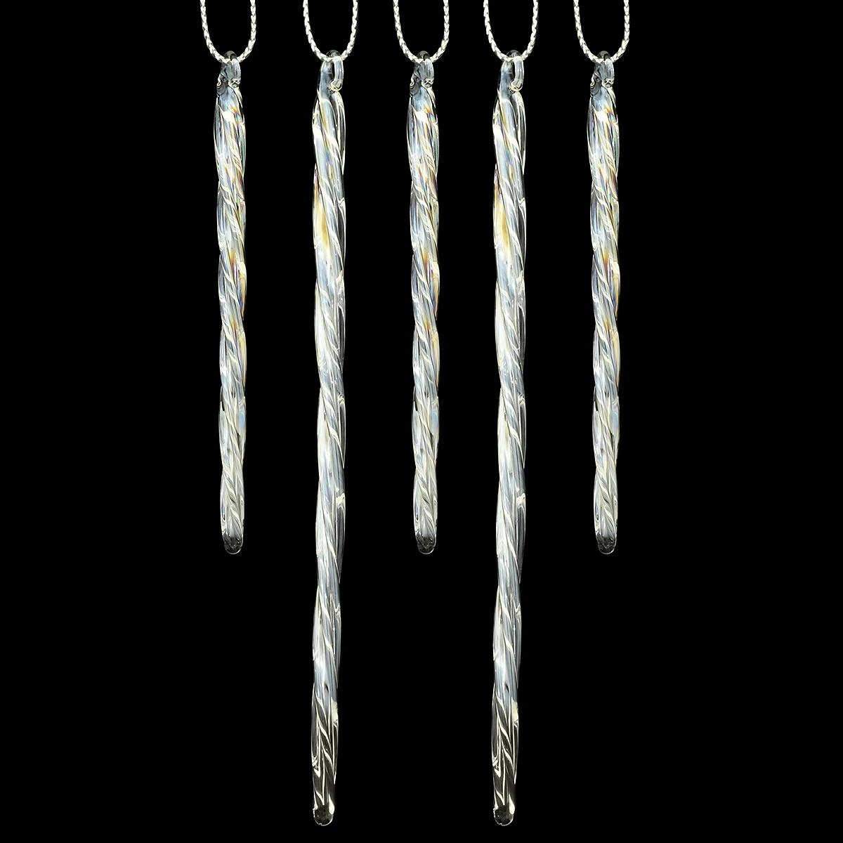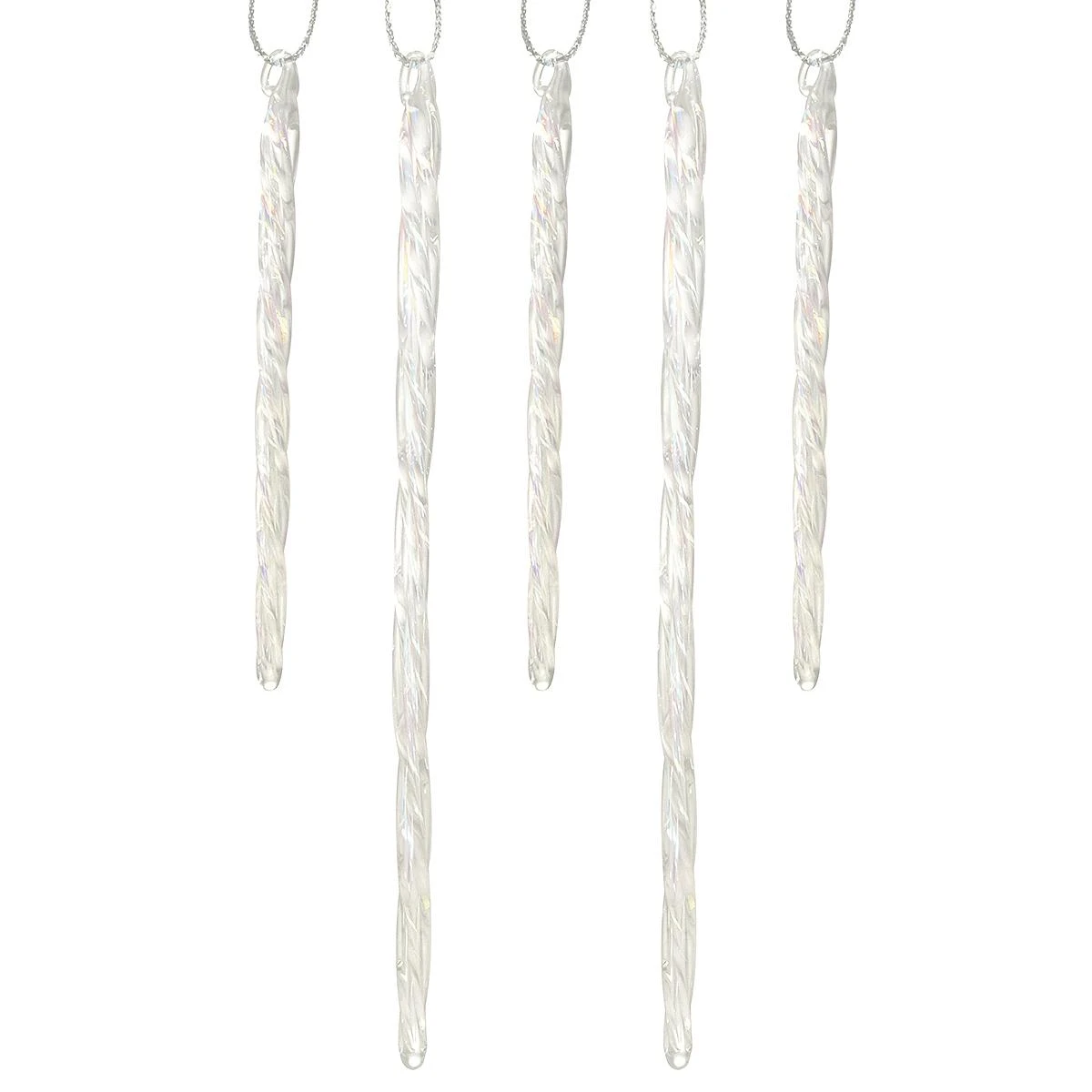Dripping with eye-catching charm, icicles have long been traditional décor for Christmas trees! Featuring 24 clear ornaments with subtle iridescent twists, this convenient boxed set features (12) 3½” icicles and (12) 5½” icicles. Each come ready to hang on a silver cord.