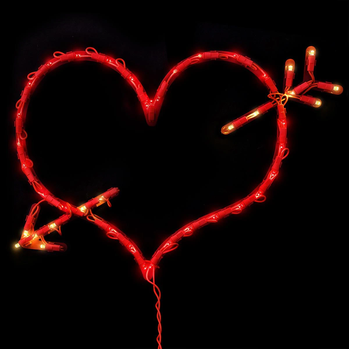 You’ll love to display this heart shaped lighted window decoration! Our 13″ tall x 18″ wide LED heart with arrow ornamental comes fully assembled and includes these features: