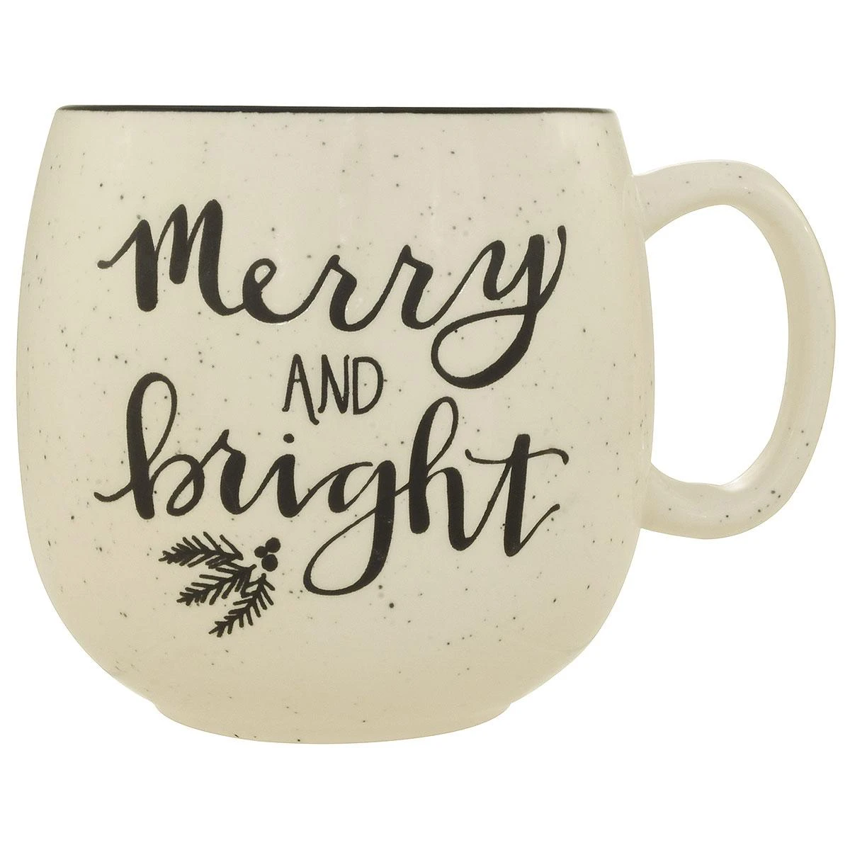 Coffee or tea time is sure to be “Merry And Bright” when you sip your favorite hot beverage from this 4″ ceramic mug finished in a black and white bespeckled earthenware style.