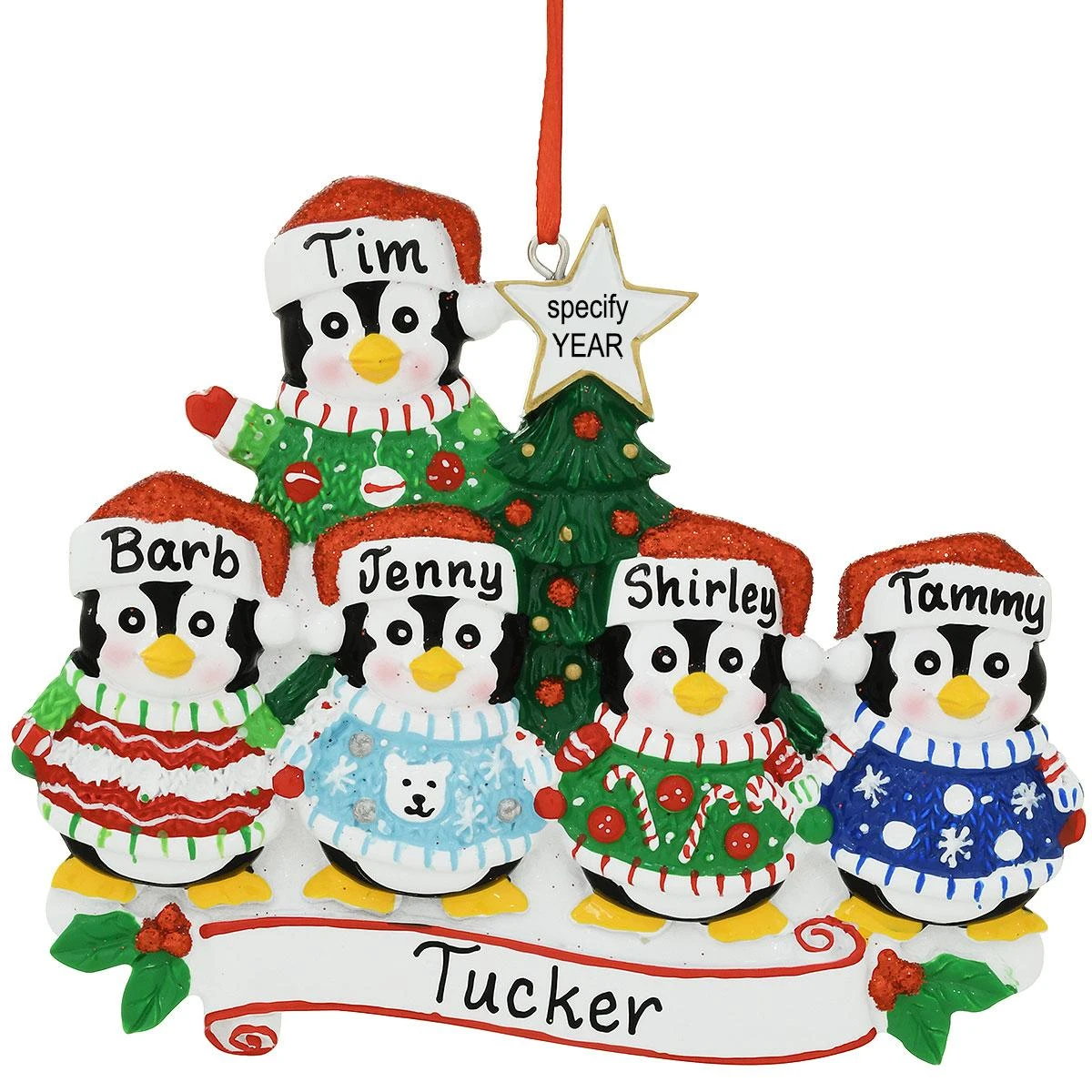 Caught up in Christmas sweater fun, these 5 penguins proudly pose in front of the Christmas tree as stand-ins for your friends or family! Coming ready to hang with a red ribbon and crafted of resin with bright glazes and dazzling glitter accents, this adorable keepsake measures 4″ tall x 4¾” wide and can be personalized with a black paint pen by one of our professional Bronner’s artists at no additional charge.
