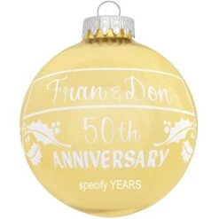 Please select “ADD TO CART” to personalize this ornament with a 1st Name/Word (up to 12 characters), 2nd Name/Word (up to 12 characters), Anniversary (up to 5 characters), and Years (up to 15 characters).