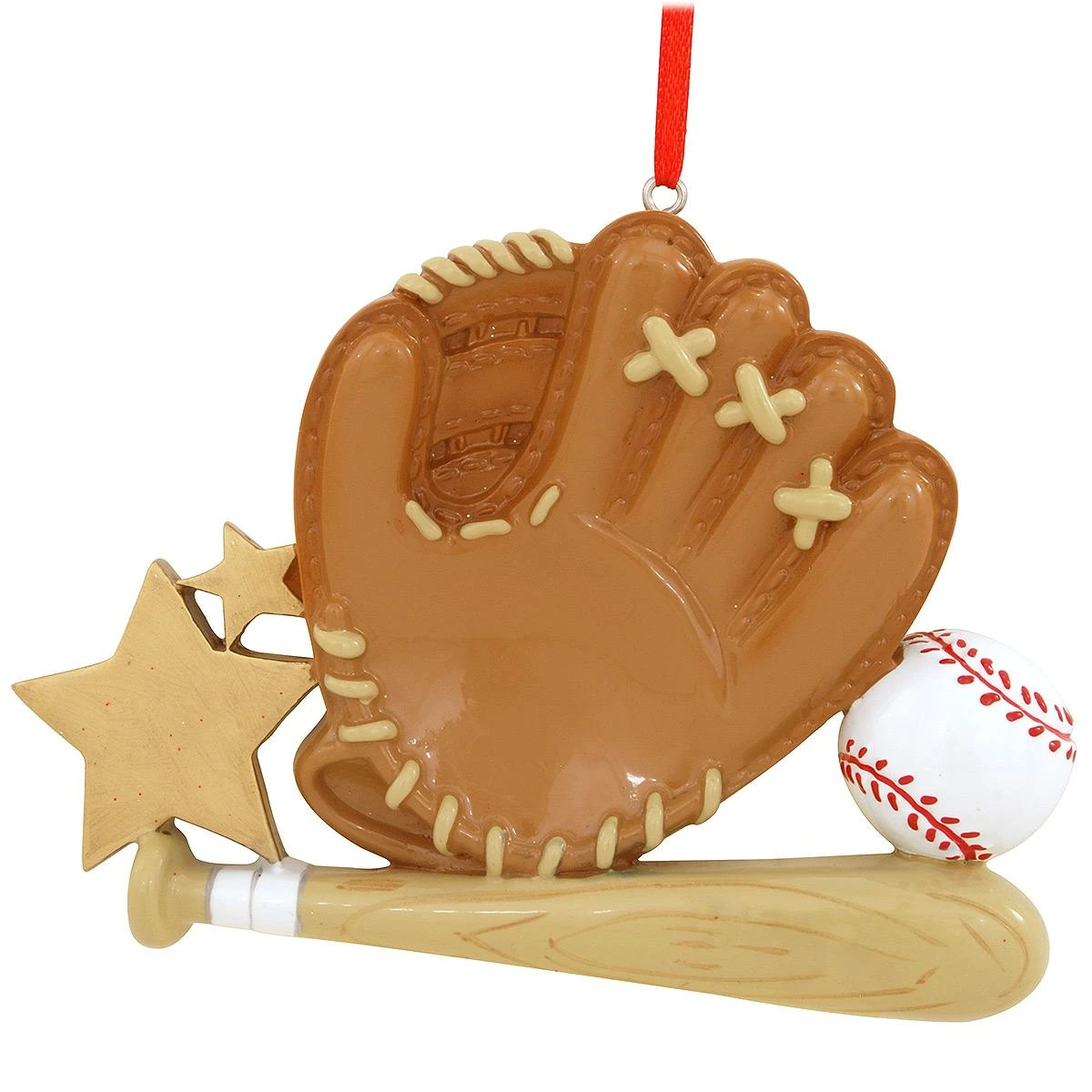 We’ve covered all the bases with this attractive design! Complete with glove, bat and baseball our 3½” tall ornament is accented with a pair of shining gold stars. Artfully crafted of resin with a variety of colorful glazes, this sport-ing keepsake can be personalized for your favorite player with a black paint pen at no additional charge.