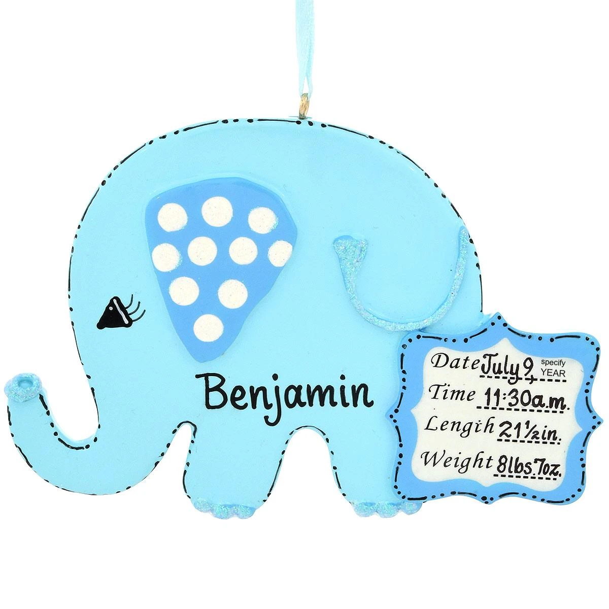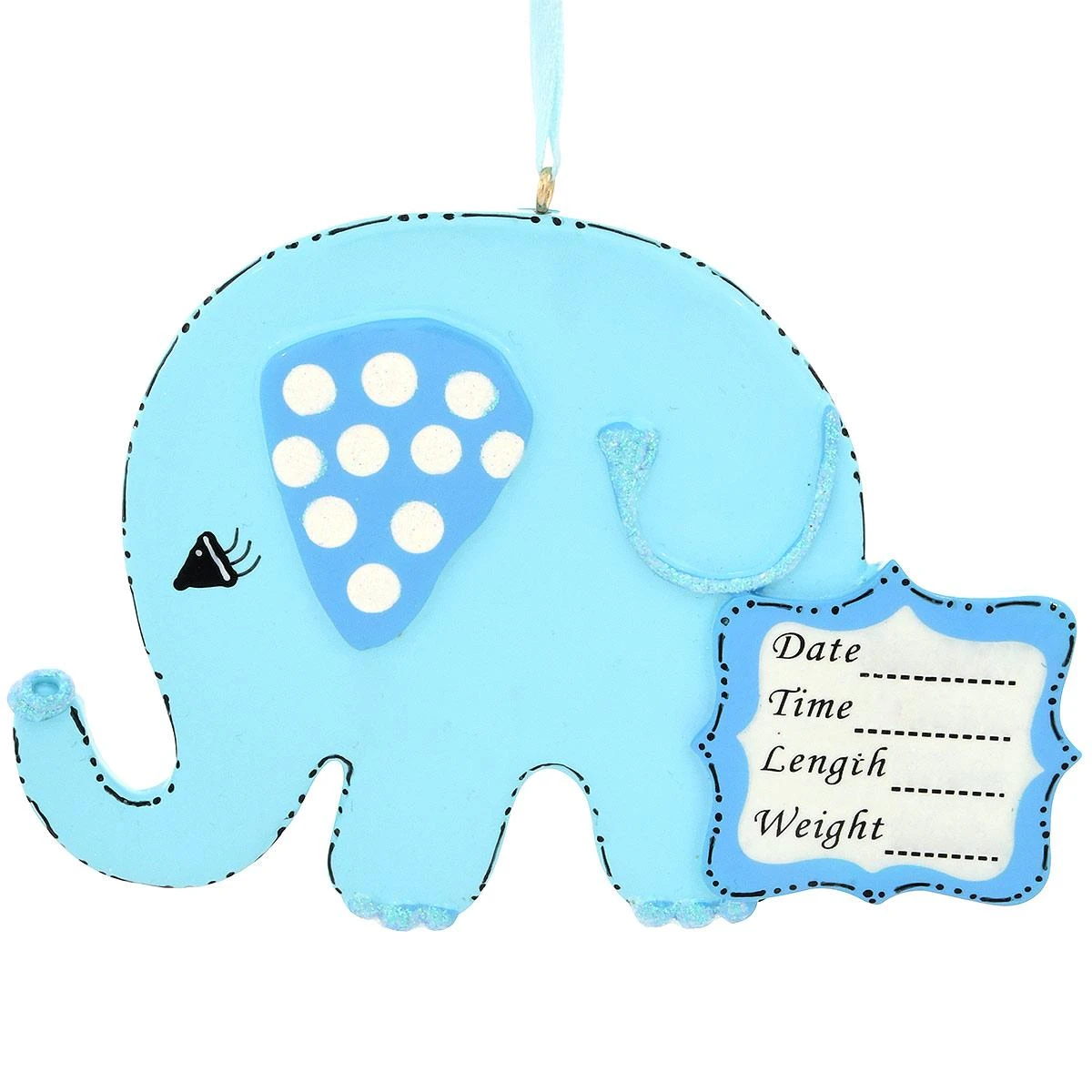 You’ll “never forget” your baby’s birth stats with the help of this adorable blue elephant! With a special place for Baby’s name as well as his birth Date, Time, Length and Weight, this memorable keepsake shimmers with vivid glazes and accents of iridescent glitter. Coming ready to hang with a blue ribbon, our unforgettable ornament measures 3¼” tall and can be personalized with a black paint pen by one of our talented Bronner’s artists at no additional charge.