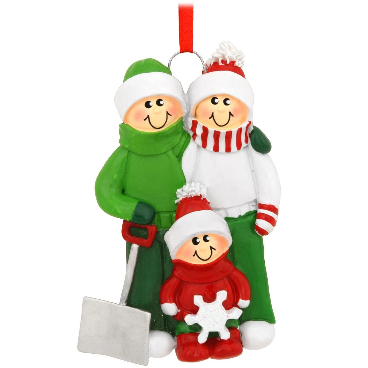 There’s snow-time like the holidays for family fun! Artfully crafted of resin in holiday hues of red and green, our 3¾” tall personalized family of 3 with snow shovel ornament features 3 festively dressed figures and comes ready to hang with a red ribbon. Allow one of our professional Bronner’s artists to add a personal touch to this adorable ornament with a black paint pen at no additional charge for an up-lift-ing gift the whole family will enjoy! Please select the alternate image for a view of this ornament without personalization.