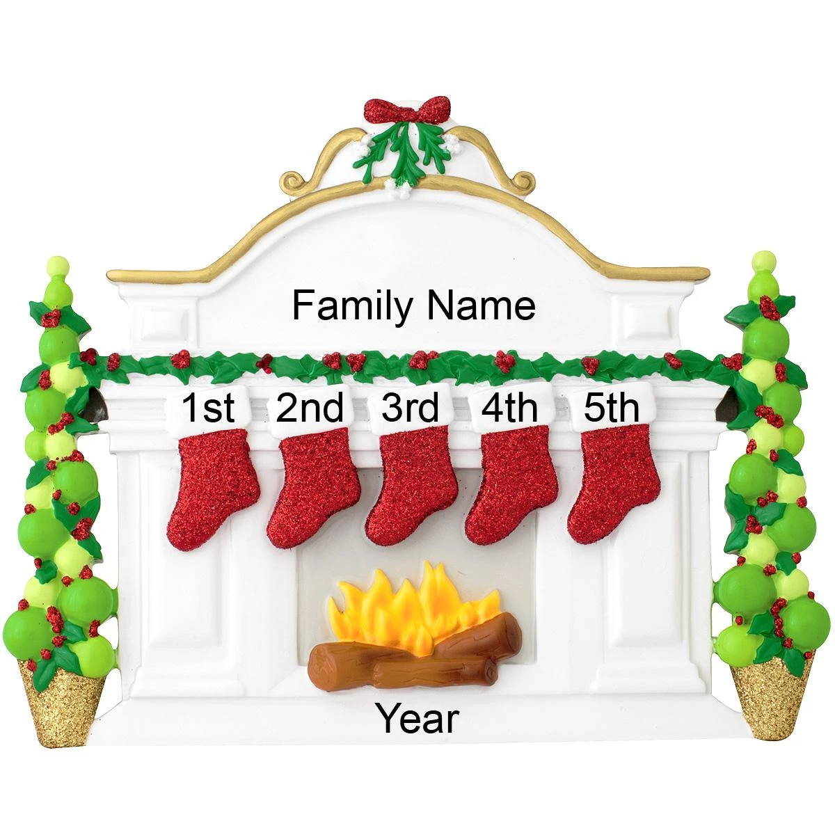 These stockings are hung by the chimney with care with a festive design beyond compare! Skillfully crafted of resin, our personalized 6¼” tall x 7¾” wide fireplace mantle with 5 stockings tabletop display has an attached picture frame-type easel that allows it to stand on any flat surface. Allow one of our talented Bronner’s artists to add a personalized touch with a black paint pen at no additional charge. Your family will bask in the glow of this heart warming display!