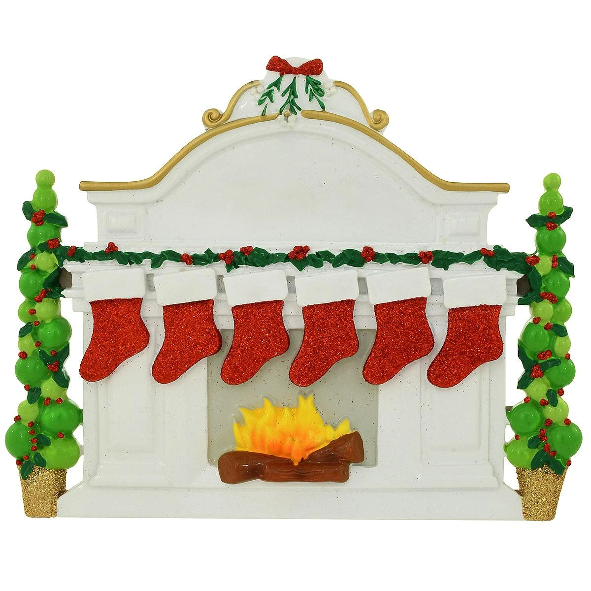These stockings are hung by the chimney with care with a festive design beyond compare! Skillfully crafted of resin, our personalized 6¼” tall x 7¾” wide fireplace mantle with 6 stockings tabletop display has an attached picture frame-type easel that allows it to stand on any flat surface. Allow one of our talented Bronner’s artists to add a personalized touch with a black paint pen at no additional charge. Your family will bask in the glow of this heart warming display!