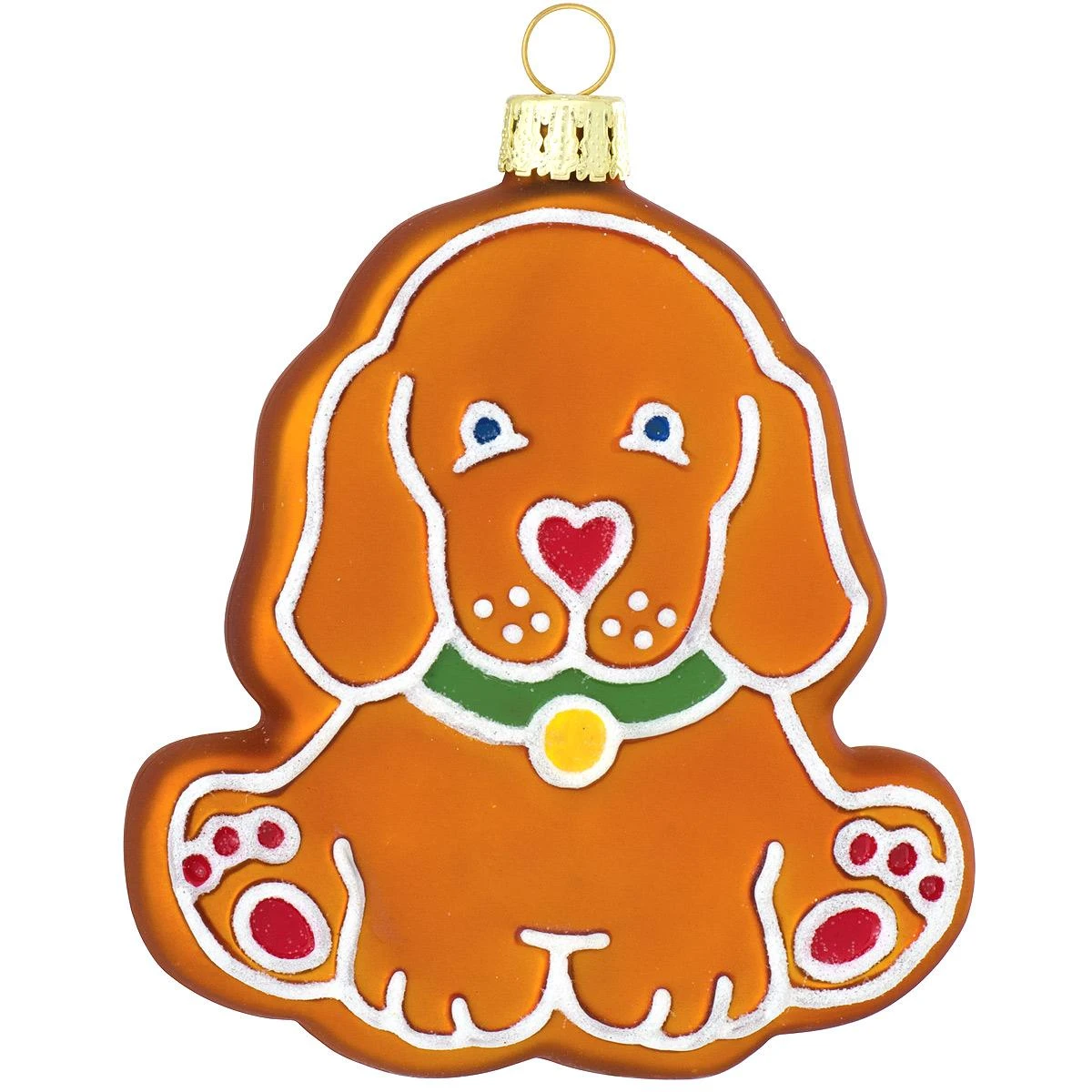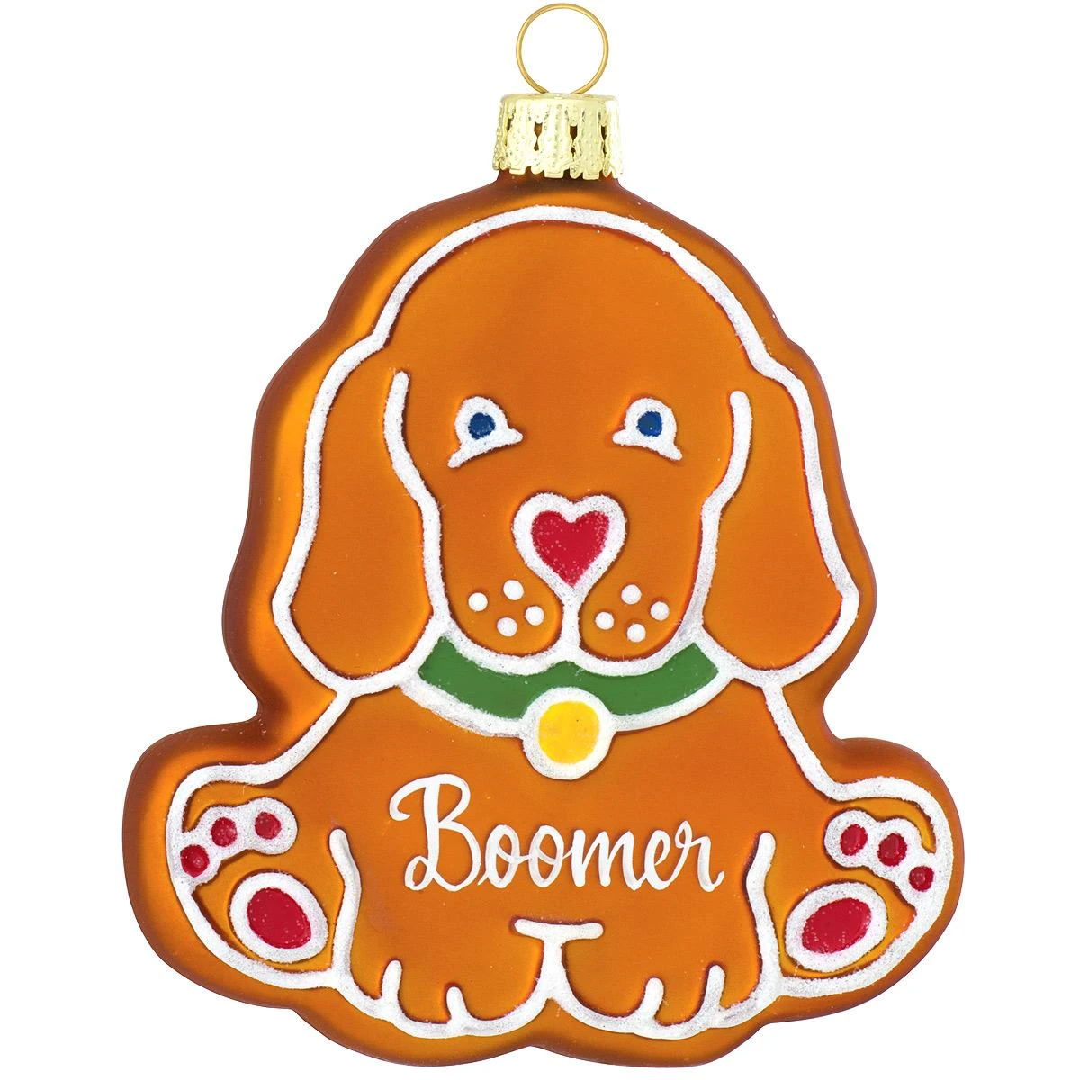 Happy HOWLidays to you and your furry friend! Crafted of glass exclusively for Bronner’s and coming ready to hang with a gold cord, our gingerbread dog with collar ornament measures 3¾” tall and is artfully detailed with vibrant glazes and shimmering glitter accents. For a gift with real personal-ity®, allow one of our talented Bronner’s artists to hand-paint your pet’s name on this special keepsake in vivid white paint at no additional charge.