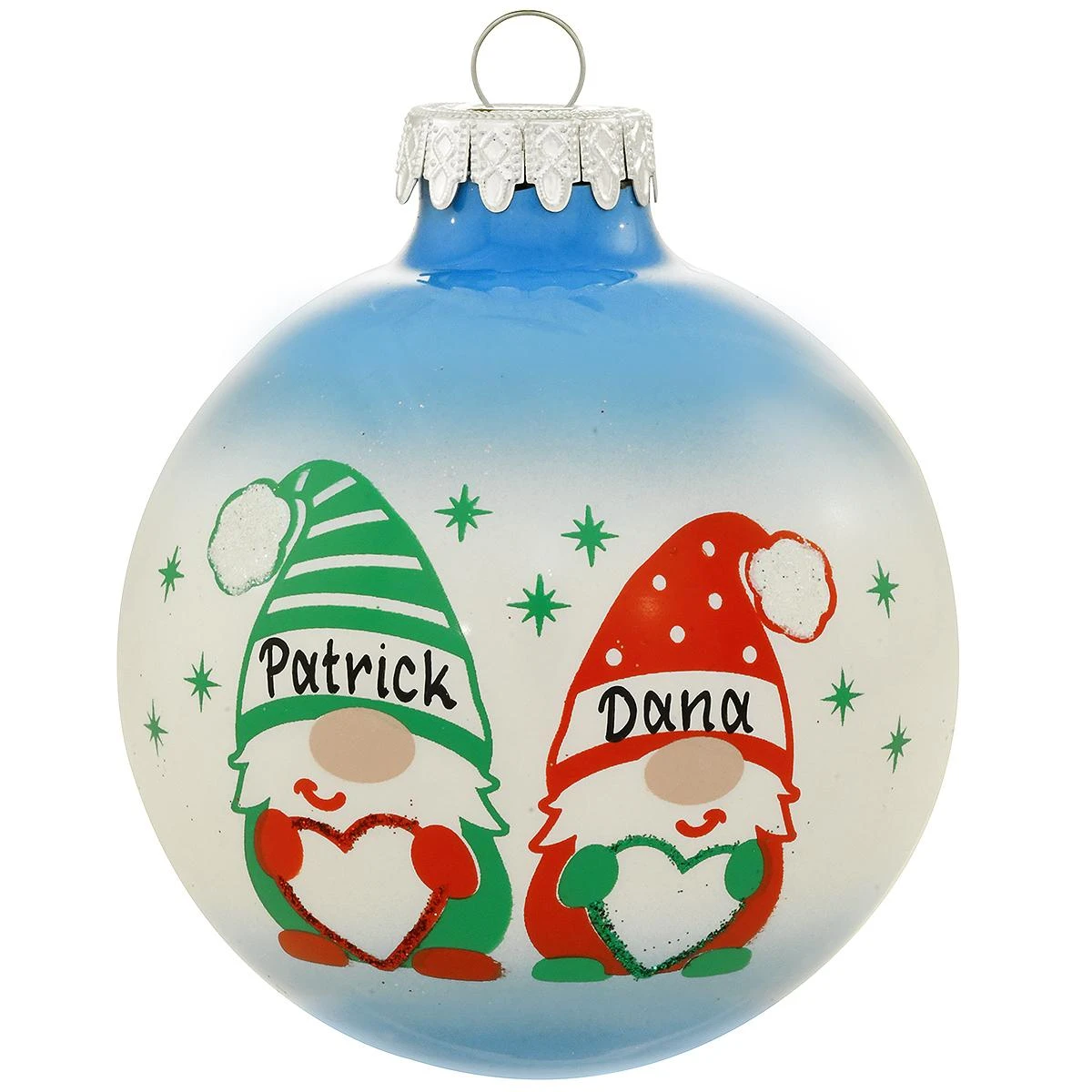 Personalized Gnome Couple 4 Inch Glass Ornament