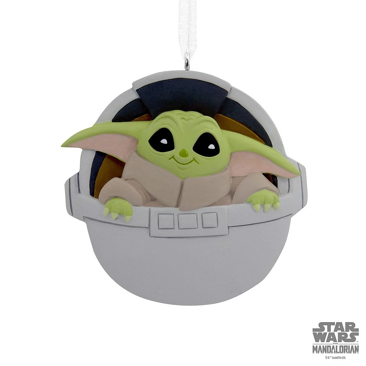 Add some precious cargo to your holiday season with this Christmas tree ornament of Grogu. Fans of the Disney+ original series “The Mandalorian” will love this stylized decoration featuring the foundling child affectionately referred to by fans as “Baby Yoda” in his hovering pram. Hallmark Ornaments celebrate characters and personalities from contemporary and classic movies, TV shows, toys, entertainment and sports. Each festive and collectible ornament is perfect for sharing with family and friends.