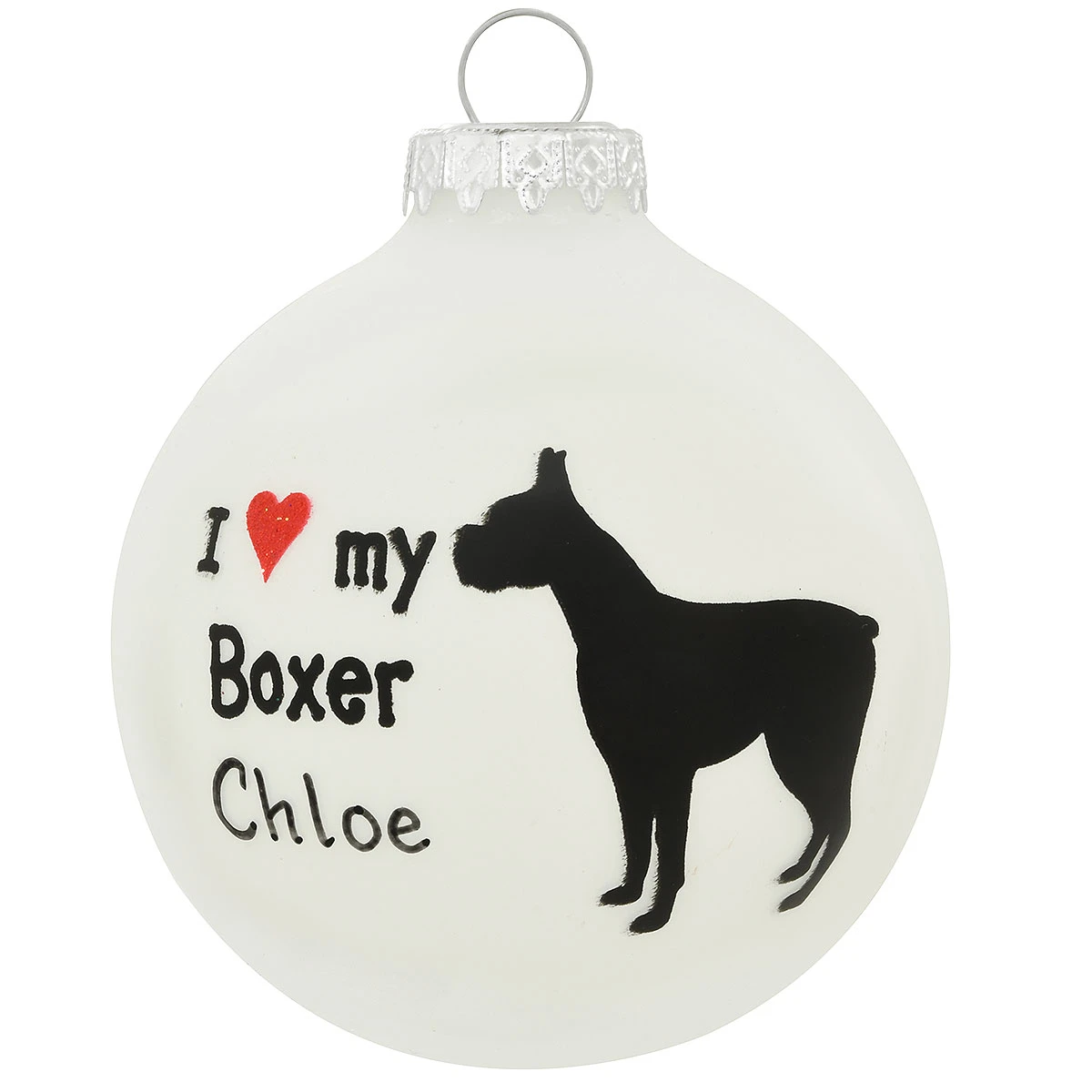 Our pets steal our heart but give us theirs; maybe that’s why it seems so easy for them to love us unconditionally! Crafted in Hungary from glass, our Bronner’s exclusive 3″ tall I ♥ My Boxer ornament celebrates the love and devotion you have for your faithful and furry friend! Allow one of our professional Bronner’s artists to add a personal touch with a black paint pen at no additional charge to this keepsake ornament.