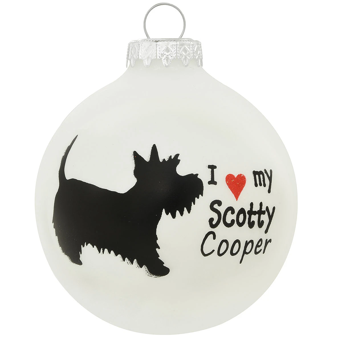 Our pets steal our heart but give us theirs; maybe that’s why it seems so easy for them to love us unconditionally! Crafted in Hungary from glass, our Bronner’s exclusive 3″ tall I ♥ My Scotty ornament celebrates the love and devotion you have for your faithful and furry friend! Allow one of our professional Bronner’s artists to add a personal touch with a black paint pen at no additional charge to this charming Scottish Terrier ornament.