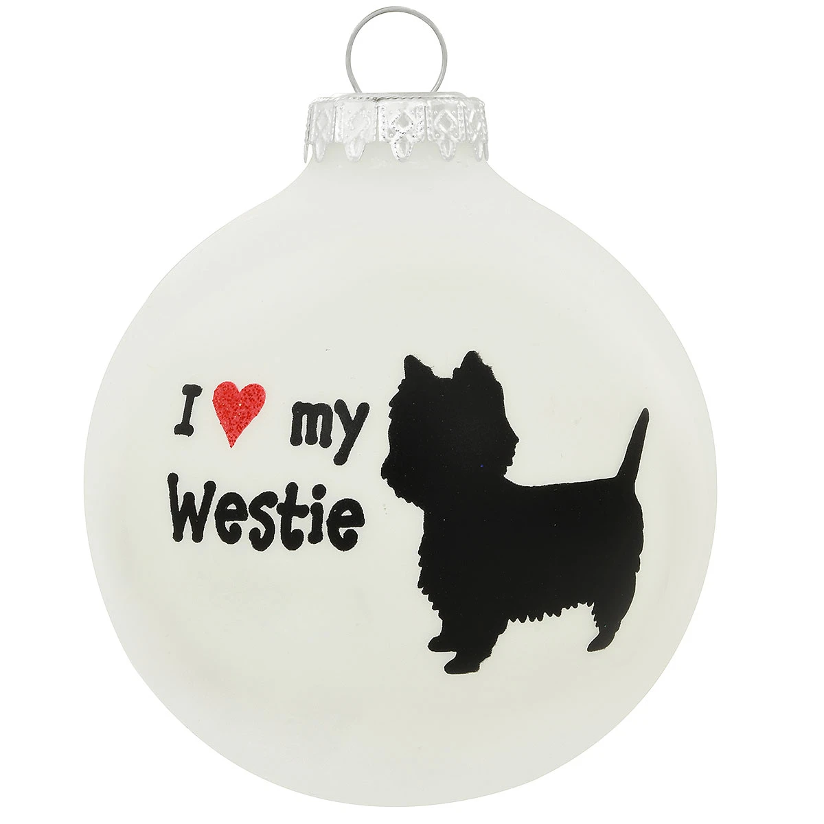 Our pets steal our heart but give us theirs; maybe that’s why it seems so easy for them to love us unconditionally! Crafted in Hungary from glass, our Bronner’s exclusive 3″ tall I ♥ My Westie ornament celebrates the love and devotion you have for your faithful and furry friend! Allow one of our professional Bronner’s artists to add a personal touch with a black paint pen at no additional charge to this charming West Highland White Terrier ornament.