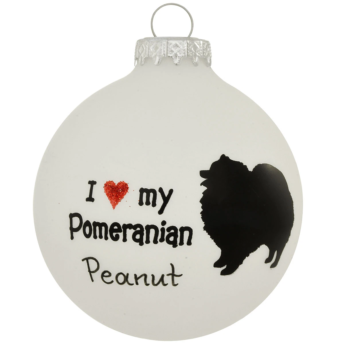 Our pets steal our heart but give us theirs; maybe that’s why it seems so easy for them to love us unconditionally! Crafted from glass in Hungary and measuring 3″ round, our Bronner’s exclusive I ♥ My Pomeranian ornament celebrates the love and devotion you have for your dog…your faithful and furry friend! Allow one of our professional Bronner’s artists to add a personal touch with a black paint pen at no additional charge to this keepsake ornament.