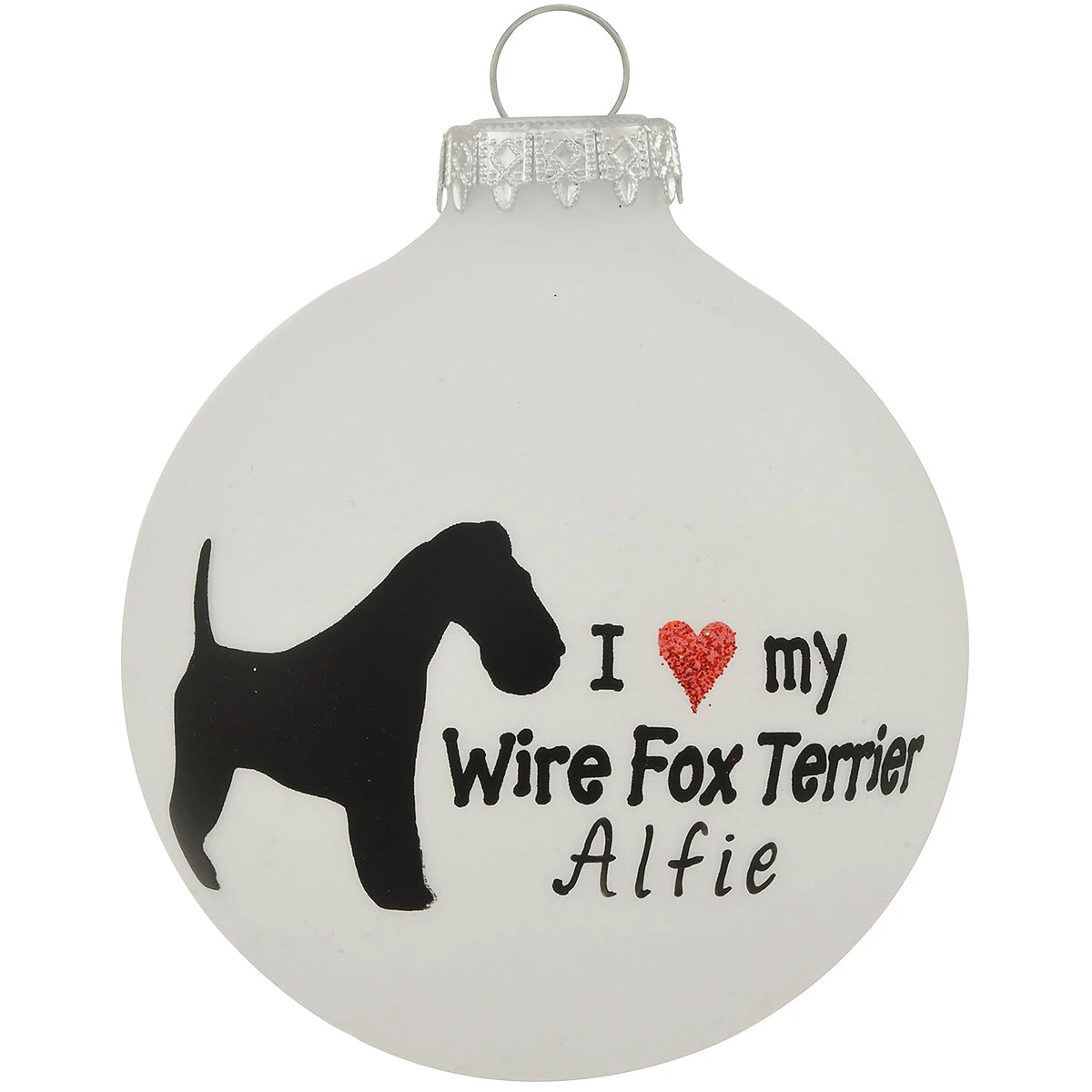 Personalized Love My Wire Fox Terrier Glass Ornament