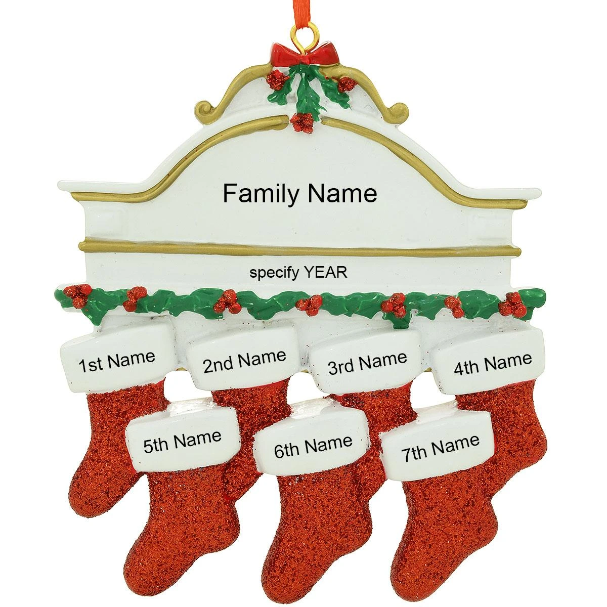 Please select the alternate image for a view of this personalized mantle with 7 stockings ornament without personalization.