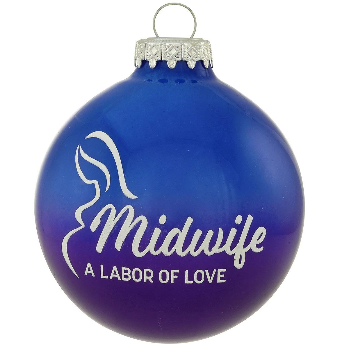 Are you looking for a gift for a special midwife? Give her a little something she won’t be “expecting” with this stunning 2 tone blue and purple keepsake. 3″ glass ornament features the outline of an expectant mother along with the sentiment “Midwife A LABOR OF LOVE” in vivid white and is perfect for personalizing by one of our talented Bronner’s artists in white paint pen at no additional charge. Crafted in Hungary exclusively for Bronner’s.Â
