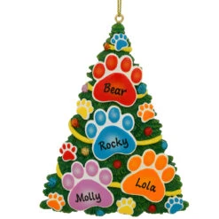 Your pets are paw-some so why not give them a special spot on the tree? Crafted in resin, our colorful Paw Tree ornament features a green Christmas tree decorated with colorful paw prints to hold the names of your furry friends. Coming ready to hang on a gold cord, this Bronner’s exclusive design measures 4¼” tall. Â