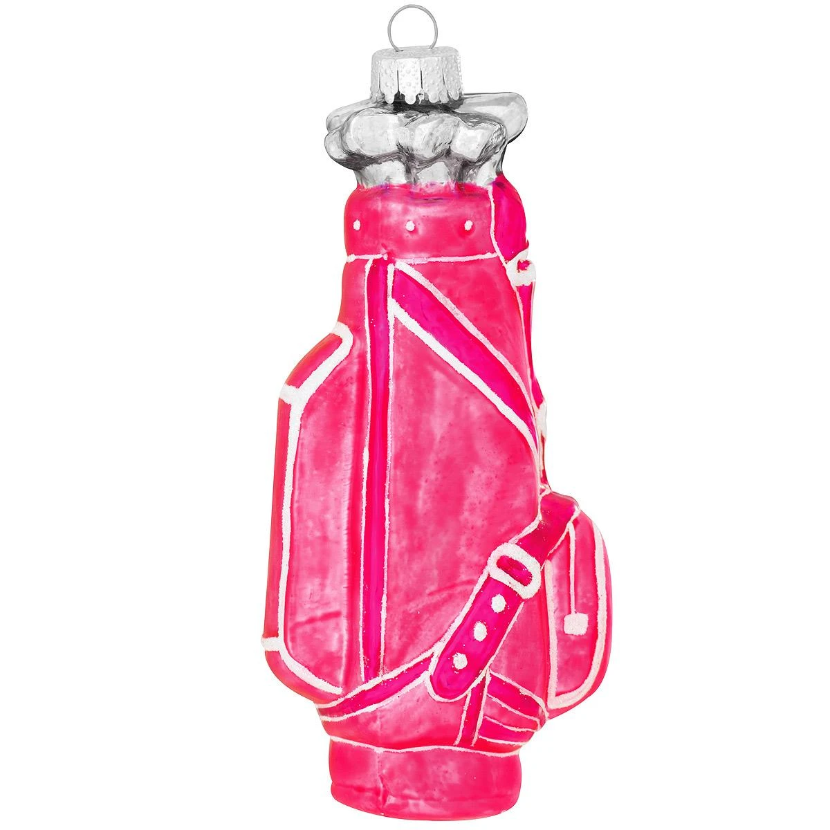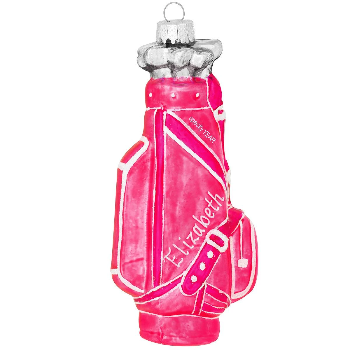 Looking to bag a great gift for your golf enthusiast? This charming keepsake is sure to fit her personality to a tee! Charmingly crafted of glass, our Bronner’s exclusive personalized pink golf bag ornament measures 5″ tall and shimmers with a vibrant fuchsia glaze and sparkling glitter accents. For a gift with true personal-ity®, allow one of our professional Bronner’s artists to add a personalized touch with a white paint pen at no additional charge.