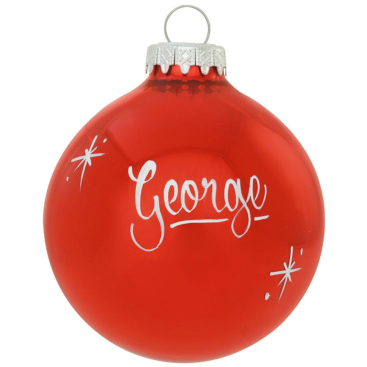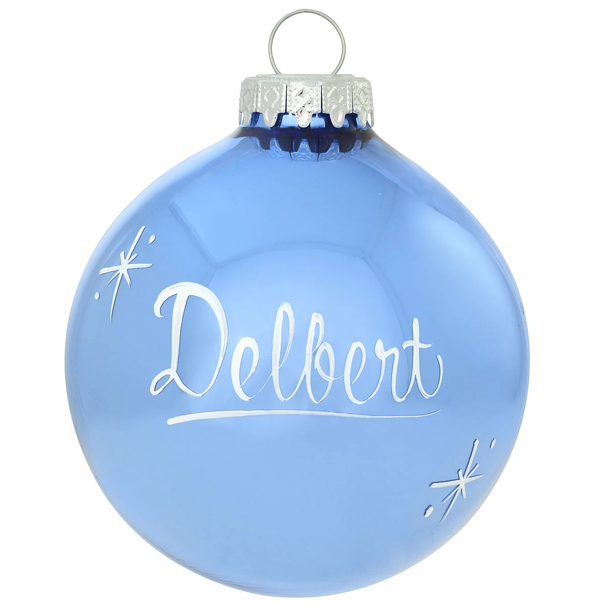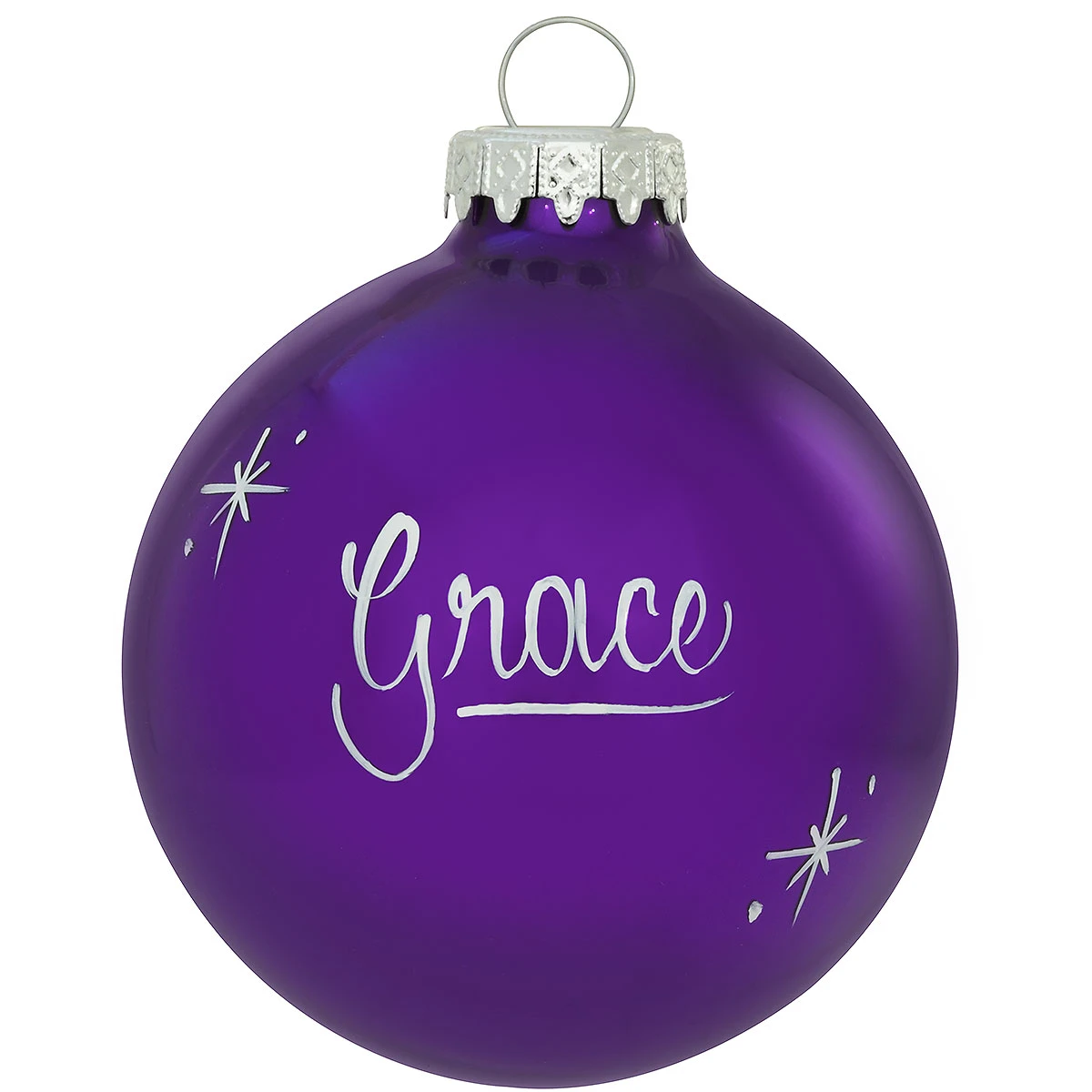Do you love the look of our classic Bronner’s “name” ornaments but wish they came in a smaller size? Measuring 3″ round (versus the original 4″ style), this shiny glass ornament features a colorful reflective surface perfect for displaying a special name. Crafted in Hungary exclusively for Bronner’s, this eye-catching ornament makes a “Gift with Personal-ityâ„¢” that is sure to be treasured by friends and family members for years to come! Bronner’s will hand-paint the name of your choice in vivid white paint.