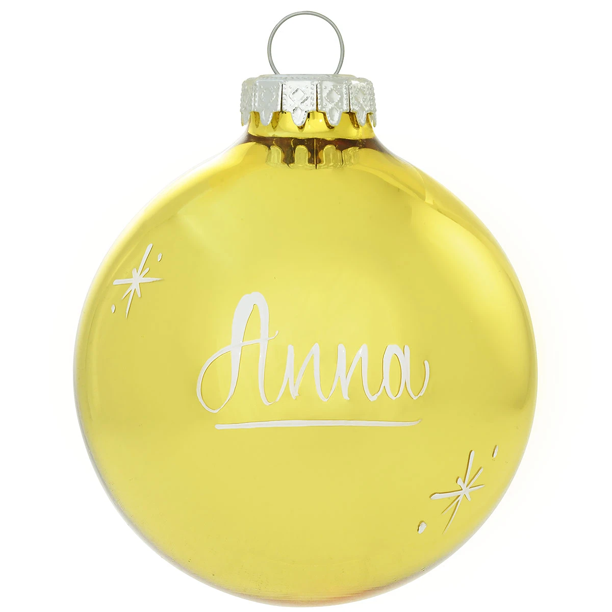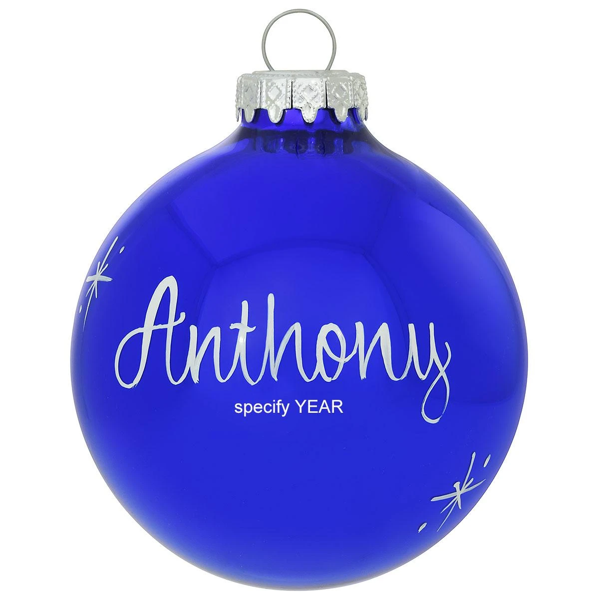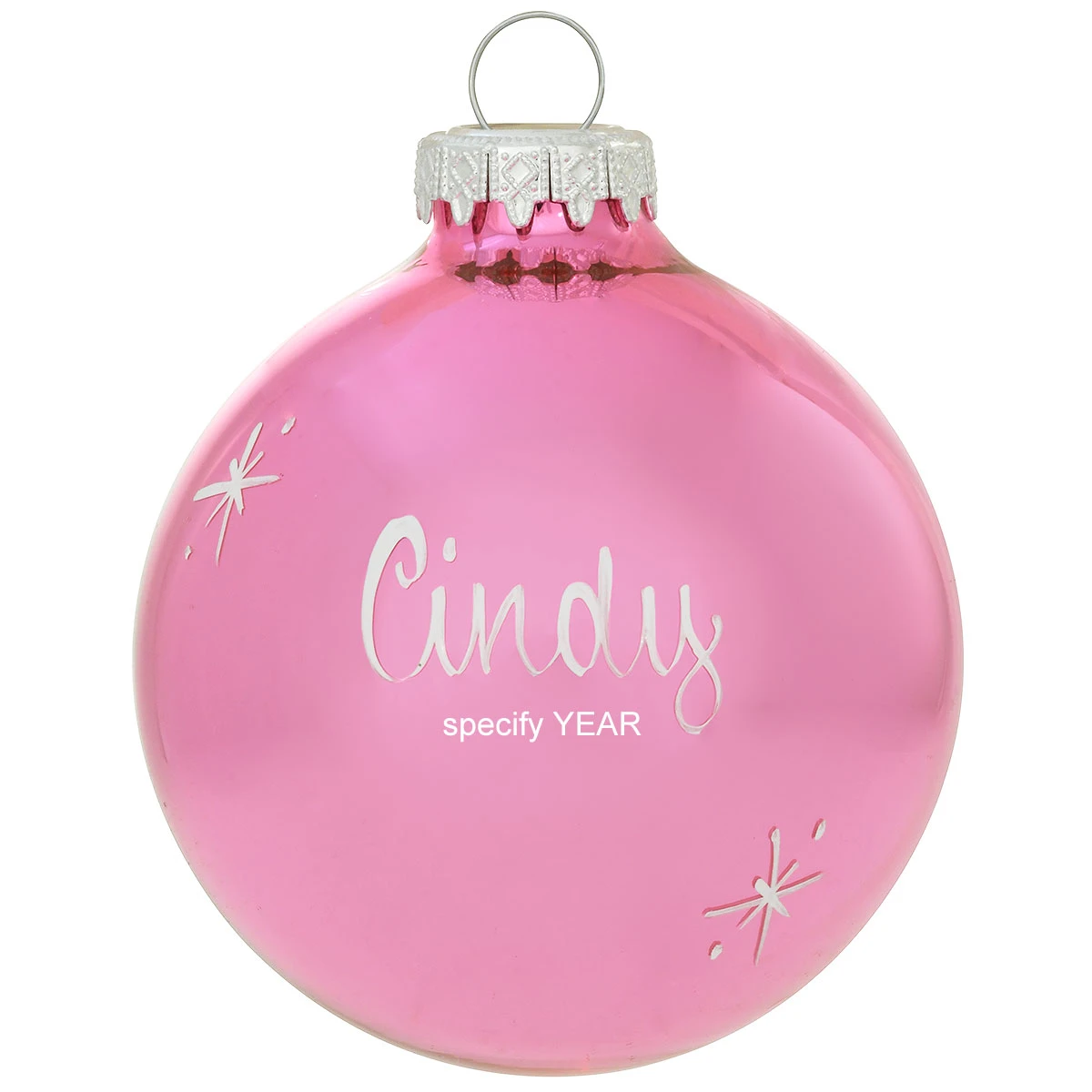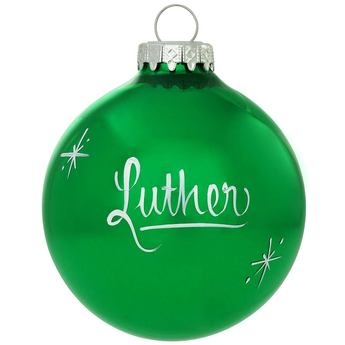 Do you love the look of our classic Bronner’s “name” ornaments but wish they came in a smaller size? Measuring 3″ round (versus the original 4″ style), this shiny glass ornament features a colorful reflective surface perfect for displaying a special name. Crafted in Hungary exclusively for Bronner’s, this eye-catching ornament makes a “Gift with Personal-ityâ„¢” that is sure to be treasured by friends and family members for years to come! Bronner’s will hand-paint the name of your choice in vivid white paint.