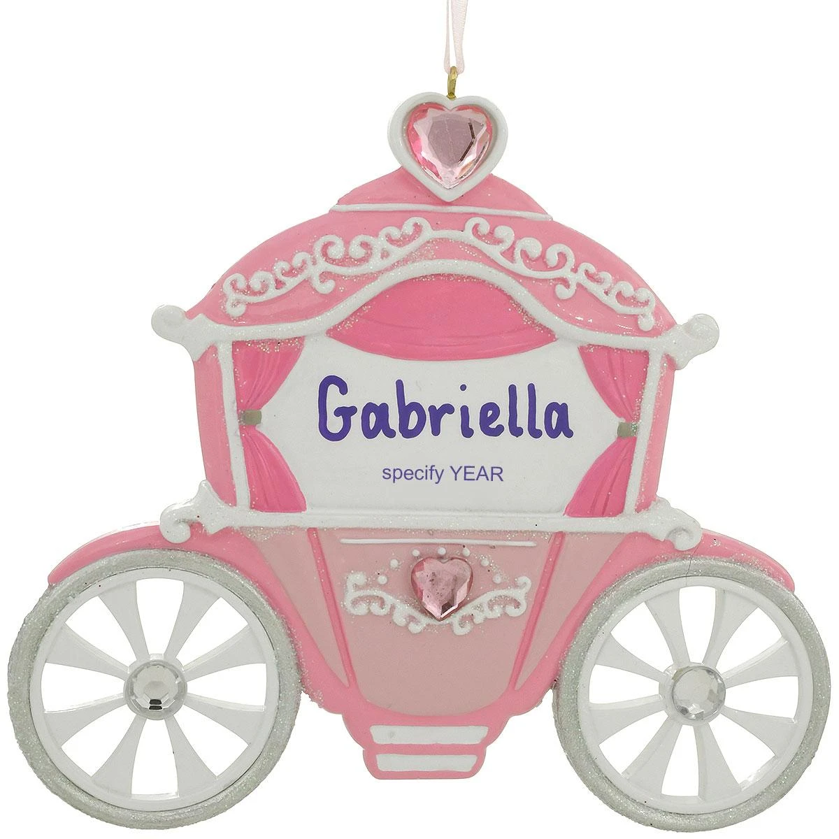 Please select “ADD TO CART” to personalize this royal princess carriage ornament with Name (up to 12 characters) and Year (4 characters).