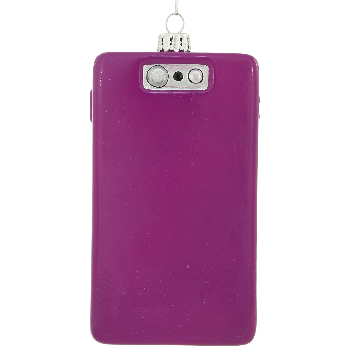 Why not ring in the holiday season with a shiny new purple smart phone? Cleverly designed with Christmas in mind, this unique cell phone is crafted of glass exclusively for Bronner’s with the date December 25 and time 12:25 perpetually displayed. With no plan to buy and no texting or roaming charges, this smart phone is sure to be app-reciated for many years to come! Coming ready to hang with a silver cord, our purple smart phone ornament measures approximately 4¾” tall and can be personalized by one of our professional Bronner’s artists with a purple paint pen at no additional charge.