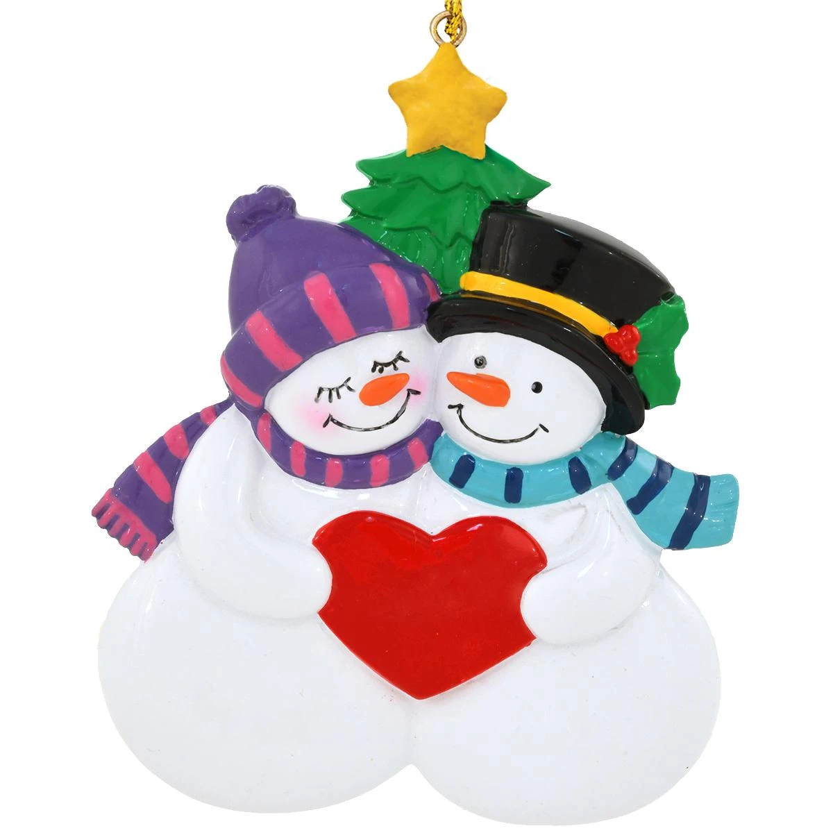 Snuggling up together in front of the Christmas tree, this loving snowman couple holds a heart that symbolizes their love and affection. Crafted of resin with a myriad of bright hand-painted glazes, our charming 4¼” tall Bronner’s exclusive ornament comes ready to hang with a gold cord and will make a great gift for a special couple whether they’re celebrating their first Christmas together or have shared many years of happiness together. Allow one of our talented artist to add a personal-izedâ„¢ touch with a black paint pen at no additional charge.