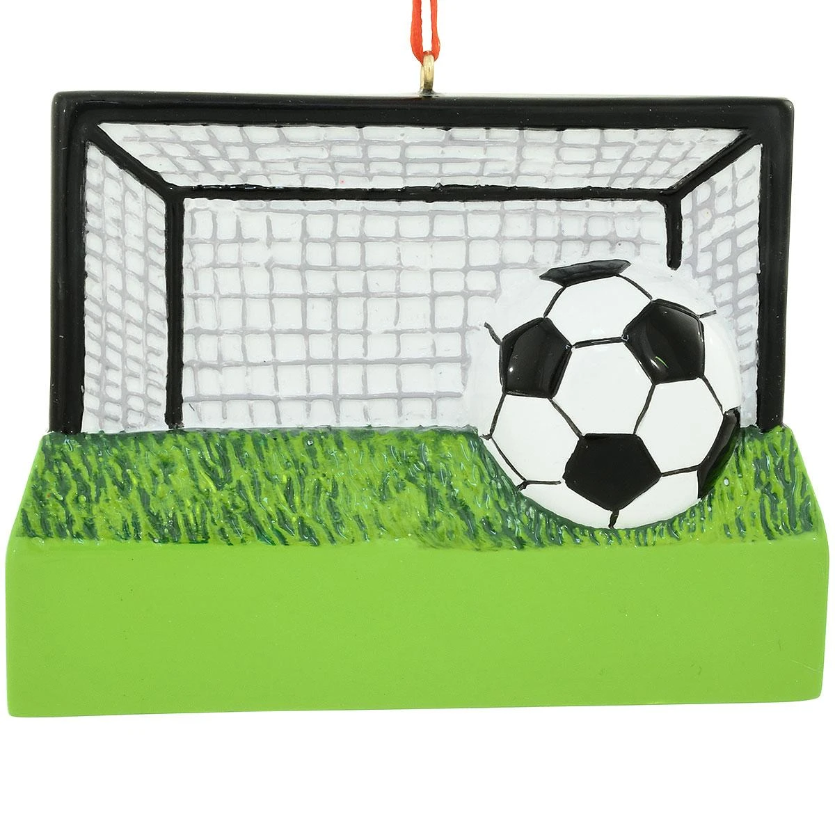 Kick off the holiday season with this great gift for your soccer enthusiast, player, or coach! Crafted of resin exclusively for Bronner’s, our vibrant soccer goal ornament depicts a vivid black and white soccer ball landing in the corner of the net. Coming ready to hang with a red ribbon, this sport-themed keepsake measures approximately 2¾” tall x 3¾” wide and is sure to score big with your special athlete, especially when personalized in black paint pen by one our talented Bronner’s artists at no additional charge.
