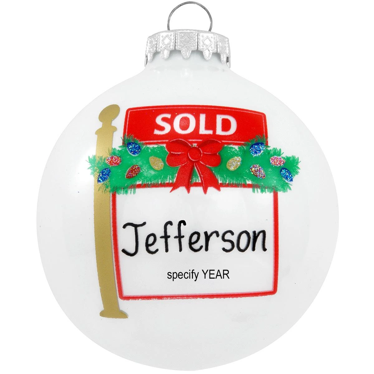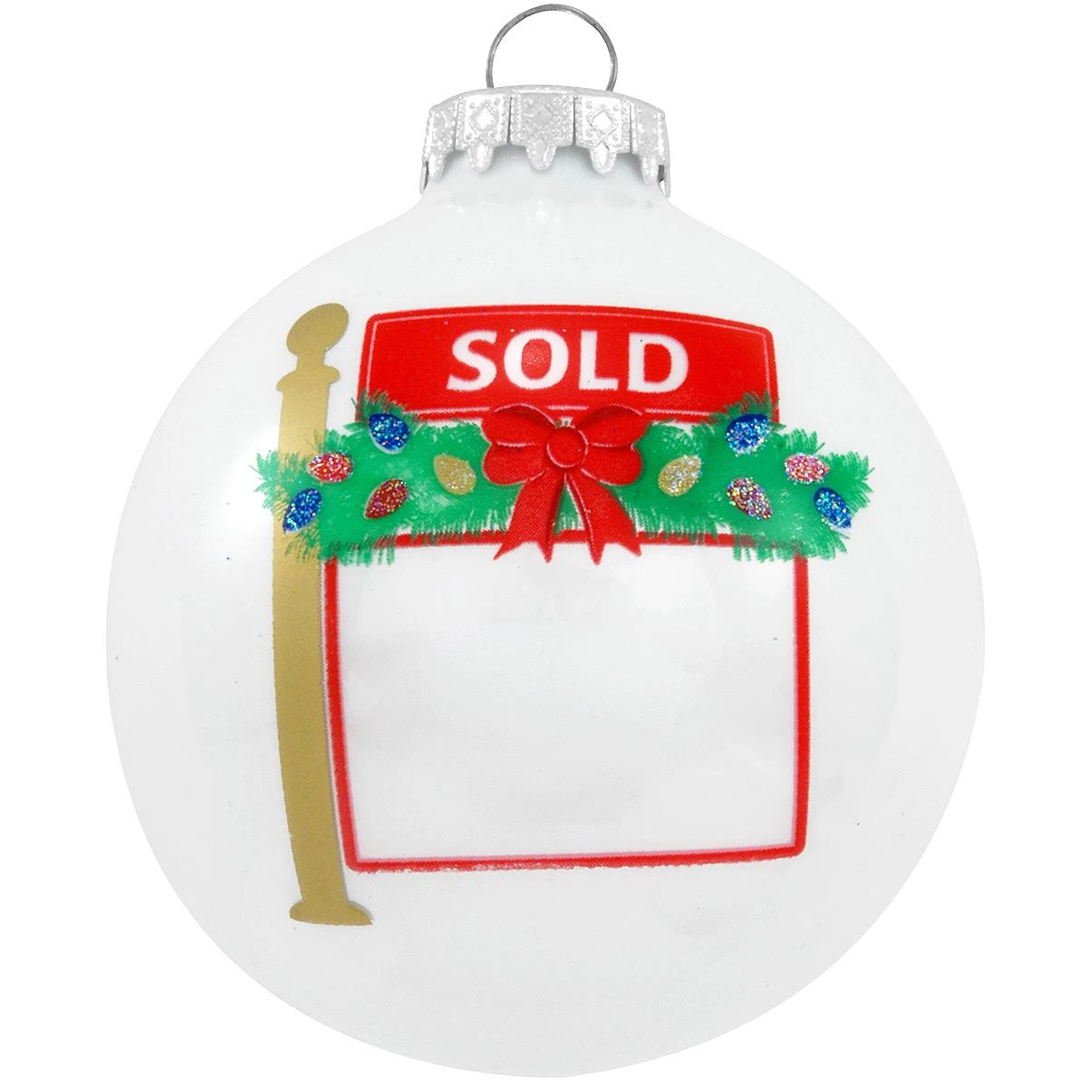 Are you in the market for a unique keepsake? Whether you’re celebrating a new home purchase or need a gift for a special real estate pro, we hope you’ll be SOLD on this festive de-sign! Artfully crafted of glass exclusively for Bronner’s from Hungary, this 3″ tall white ornament features a sold sign adorned with garland, glittery Christmas lights, and a big red bow. This handsome keepsake can be personalized by one of our talented Bronner’s artists with a black paint pen at no additional charge.