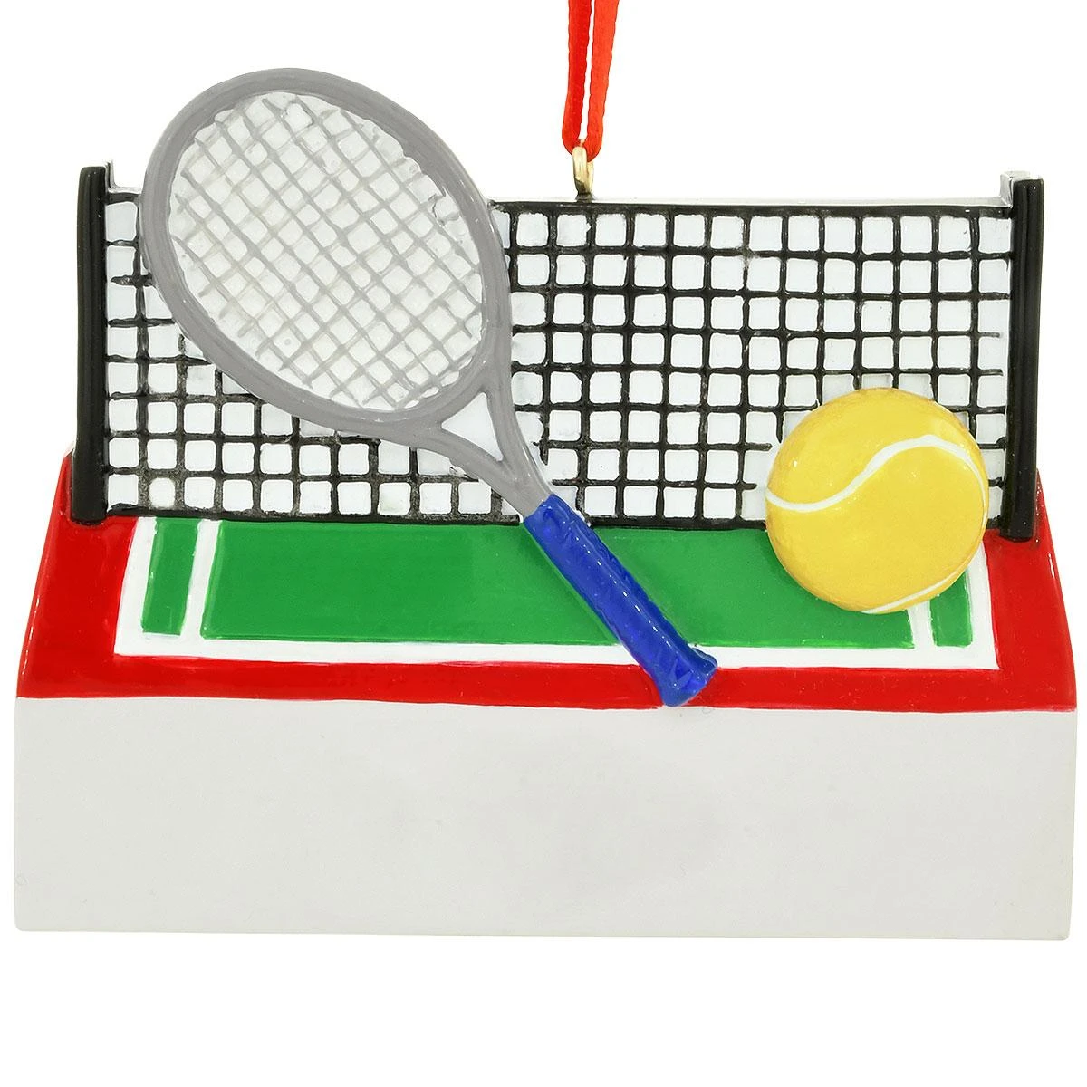Celebrate your love for the game with this winning keepsake! Crafted of resin, our colorful Bronner’s exclusive design depicts a tennis court, net, racket and ball and sports a variety of vivid glazes. A great gift for a special player, fan, or coach, this delightful 3″ tall x 3½” wide ornament comes ready to display on a red ribbon and can be personalized by one of our talented Bronner’s artists using a black paint pen at no additional charge.