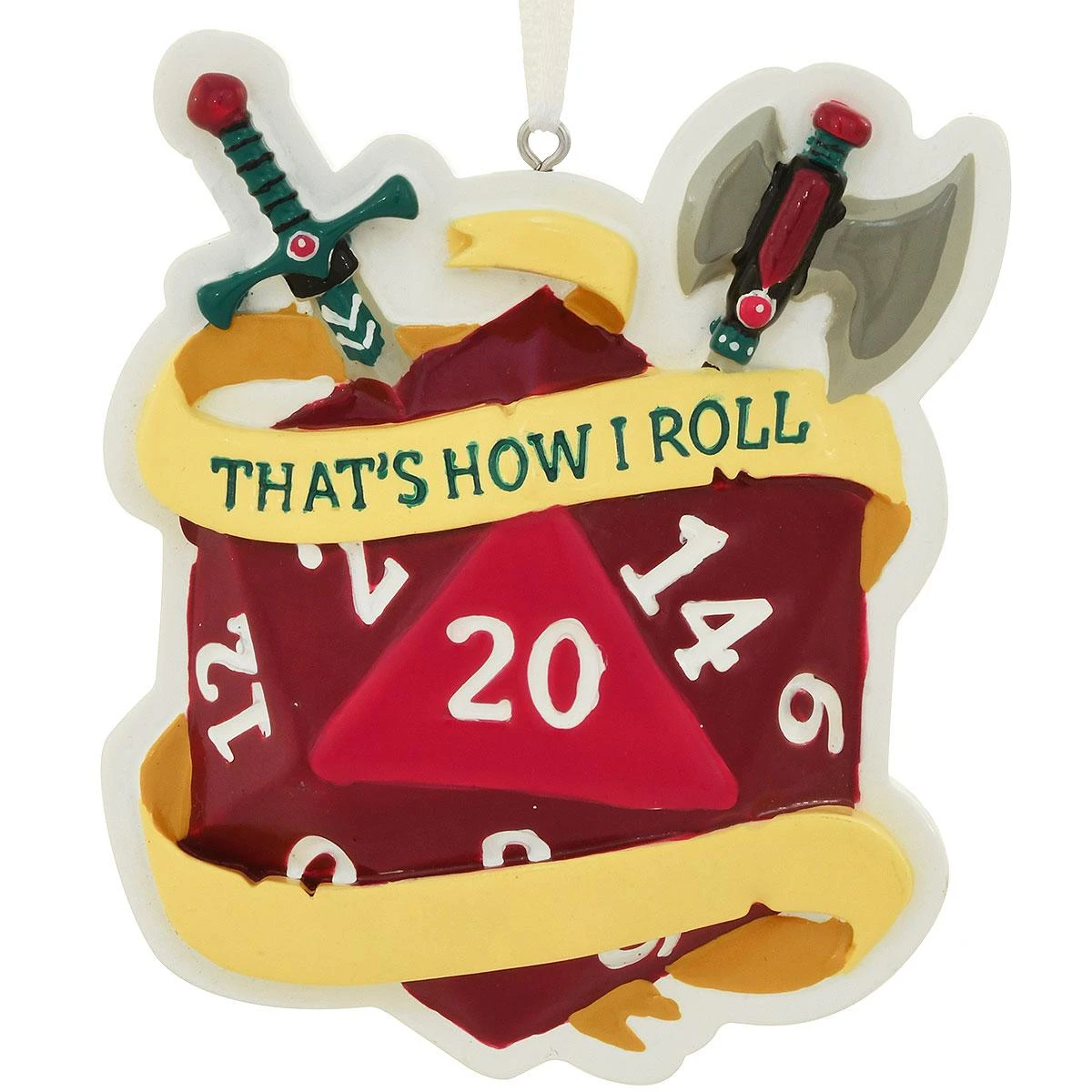 Don’t roll the dice when it comes to gift giving…give your gamer a keepsake they’re sure to love! Crafted of resin, ornament features a polyhedral dice and “That’s How I Roll” sentiment with a sword and battle axe above. Adorned in hues of yellow, red, hunter green, and white, 3¾” ornament comes ready for display on a white ribbon. Perfect for the gamer on your list whether they prefer role playing board games or fantasy-themed video games!Â