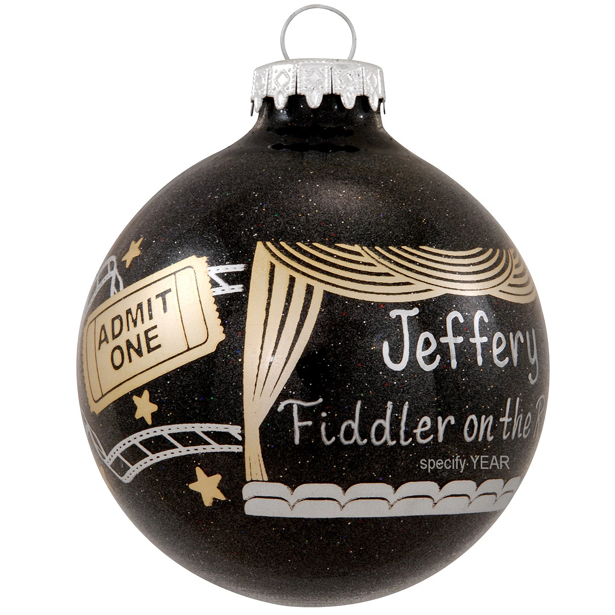 Please select the alternate image for a view of this black theatre stage ornament without personalization.