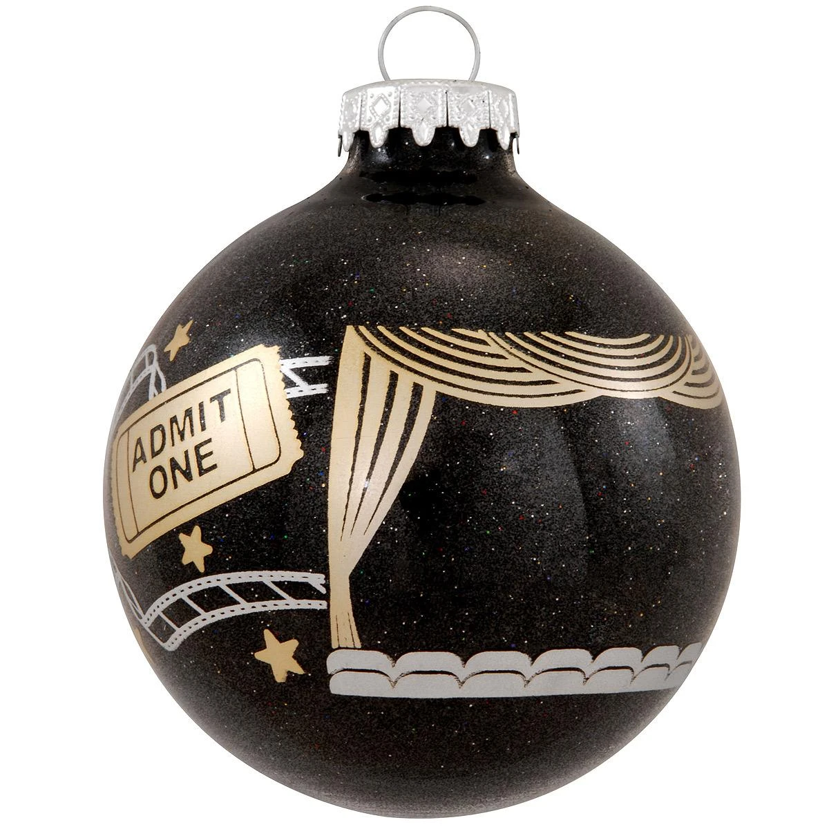 This stage is all set to highlight your thespian’s dramatic achievements! Artfully crafted of glass in Hungary, this 3″ tall Bronner’s exclusive black sparkle ornament features a curtained stage at its center with theater designs of a ticket, a roll of film, a bucket of popcorn, and a classic drama mask wrapping around the sides and back. Filled with black glitter and accented in gold and silver hues, this unique design is sure to capture the attention of your special theatre or movie enthusiast! Allow one of our talented Bronner’s artists to add a touch of personal-ity® with a silver paint pen at no additional charge.