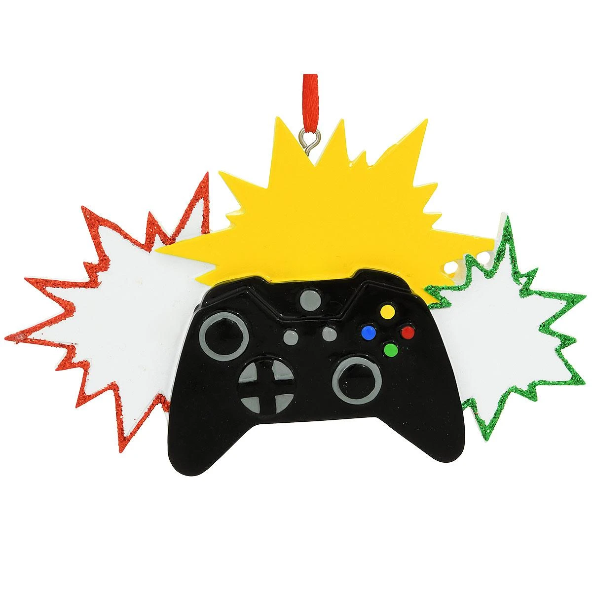 Bring your gift-giving to an exciting new level with this great memento for your video game fan! Depicting a multi-function controller emitting bursts of power in every direction, our video gamer ornament measures 3″ tall x 5″ wide and comes ready to hang with a red ribbon. Allow one of our professional Bronner’s artists to add a personalized touch in black paint-pen at no additional charge for a winning touch!