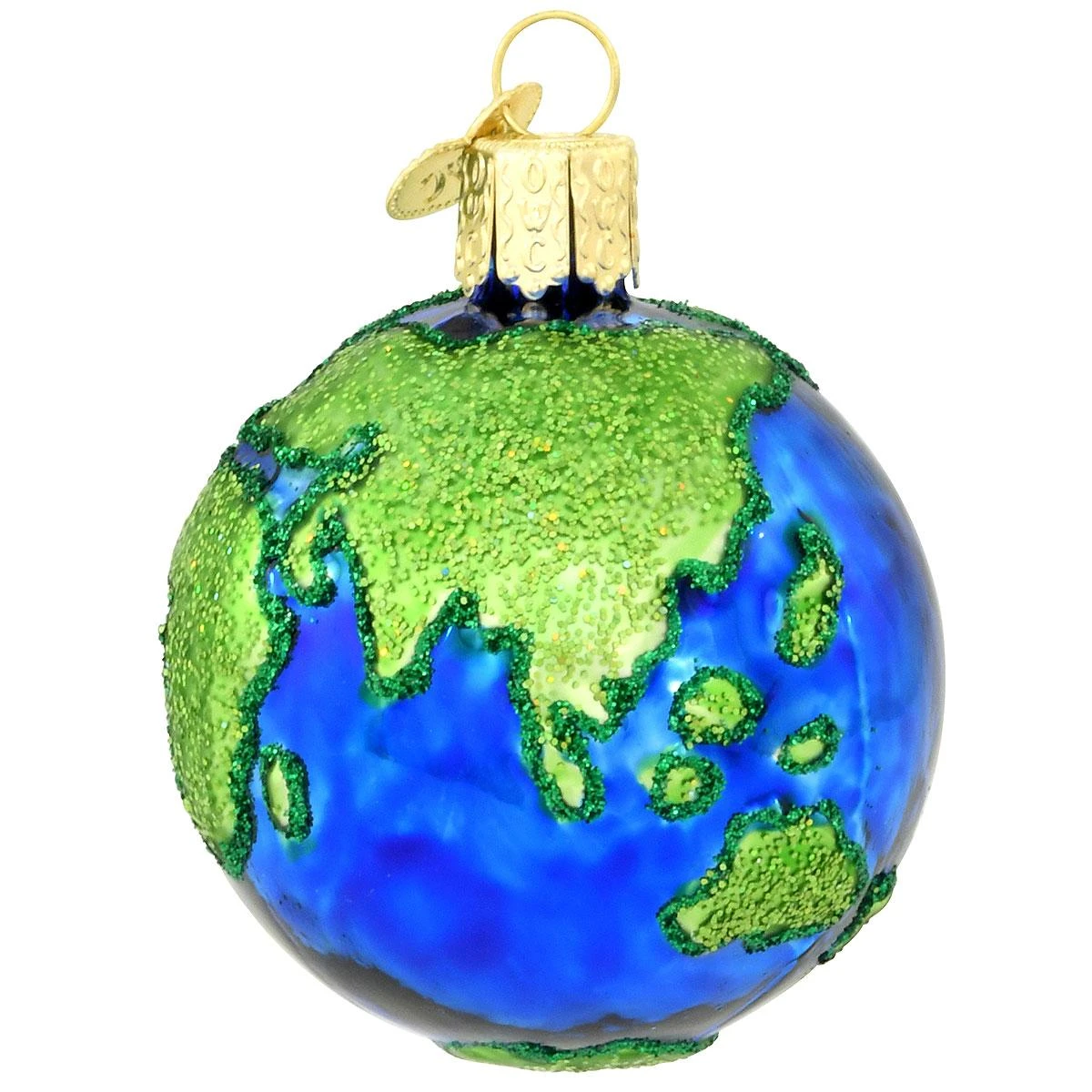 We’ve searched the world over to find this charming representation of planet earth! Crafted of glass by Old World Christmas®, our beautiful 2¼” tall ornament depicts the earth’s continents in glittery green amidst vibrant seas of brilliant blue. This unique planet earth ornament is an all-around perfect gift for the globe-trotter on your Christmas list as well as a student or teacher of geography or earth science!