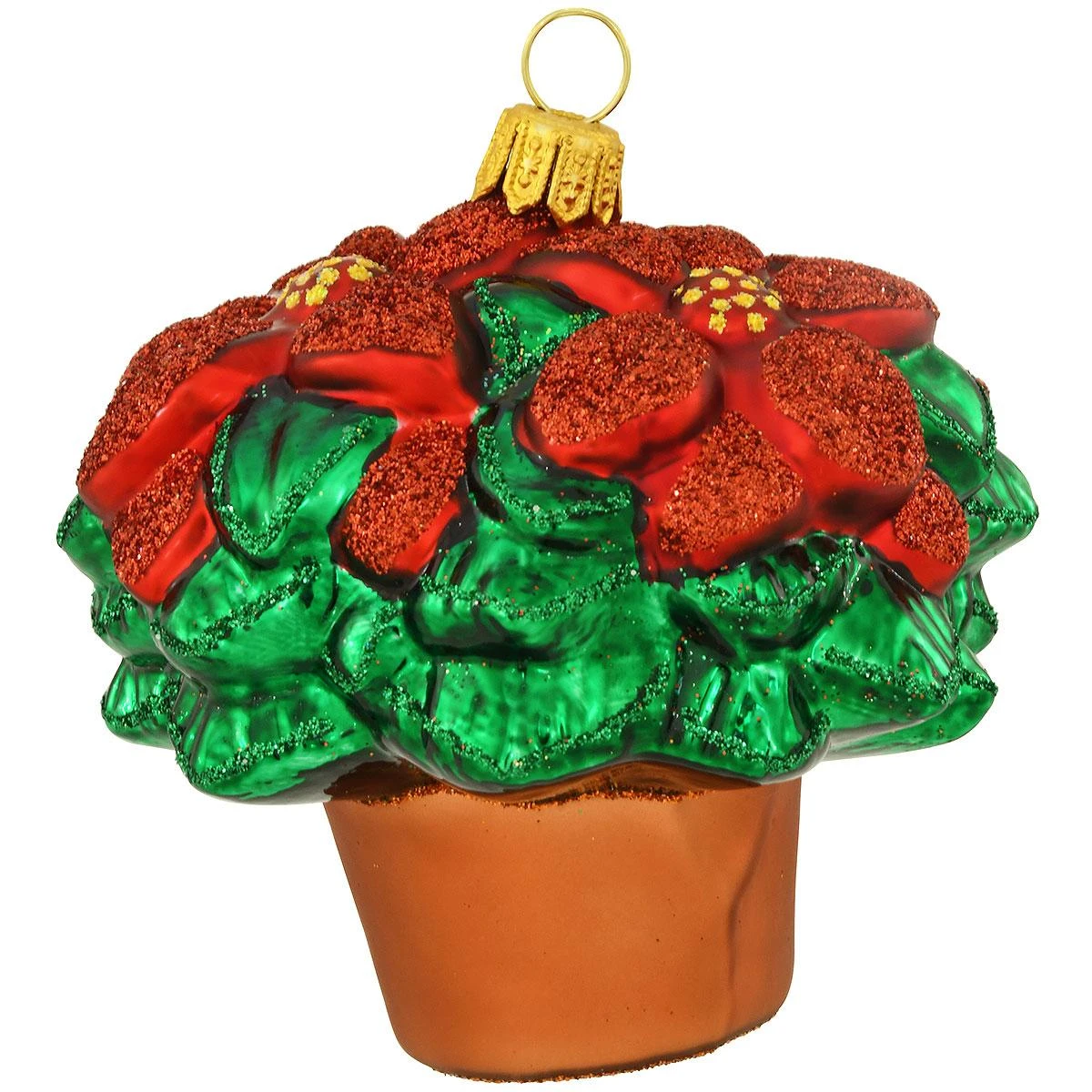 Would you be interested in a festive Christmas plant that will always look as healthy and beautiful as the day you bring it home? Loaded with brilliant red blooms and vibrant green leaves, our 2¾” tall poinsettia in pot ornament never needs watering and is guaranteed never to wilt and lose a petal of its beauty. Shimmering with a myriad of vivid glazes and dazzling glitter accents, this charming Christmas flower is masterfully crafted of glass in Poland and is sure to become a perennial favorite each and every holiday season!
