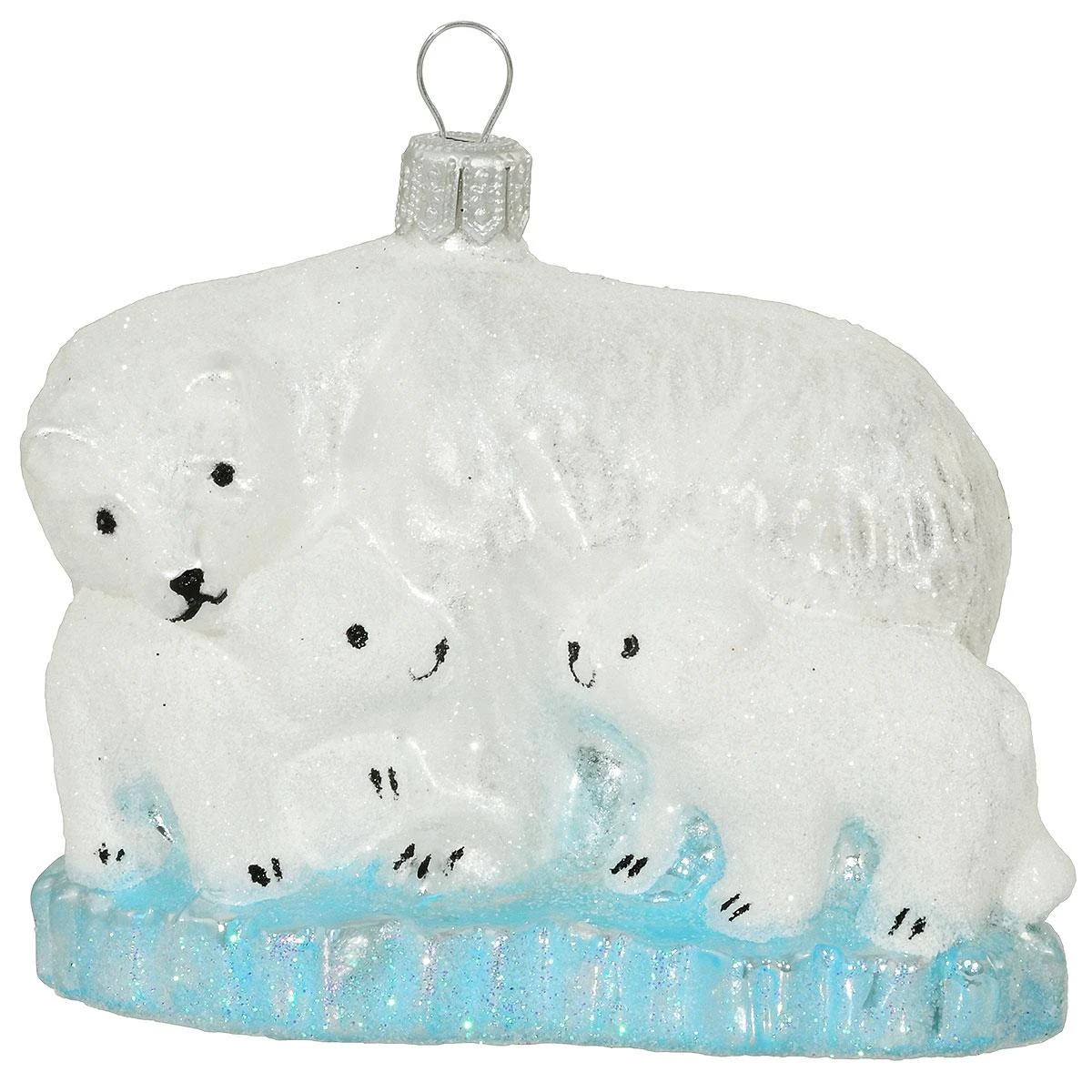 Polar bear mothers keep a watchful eye on their young cubs teaching them the survival and hunting skills they will need in adulthood. Depicting a family of polar bears on a sparkling ice floe, this beautiful glass ornament is made in Poland with opalescent glazes and dazzling glitter accents. Keepsake measures approximately 2¾” tall x 3½” wide and makes a stunning gift for the animal enthusiast on your Christmas list.Â