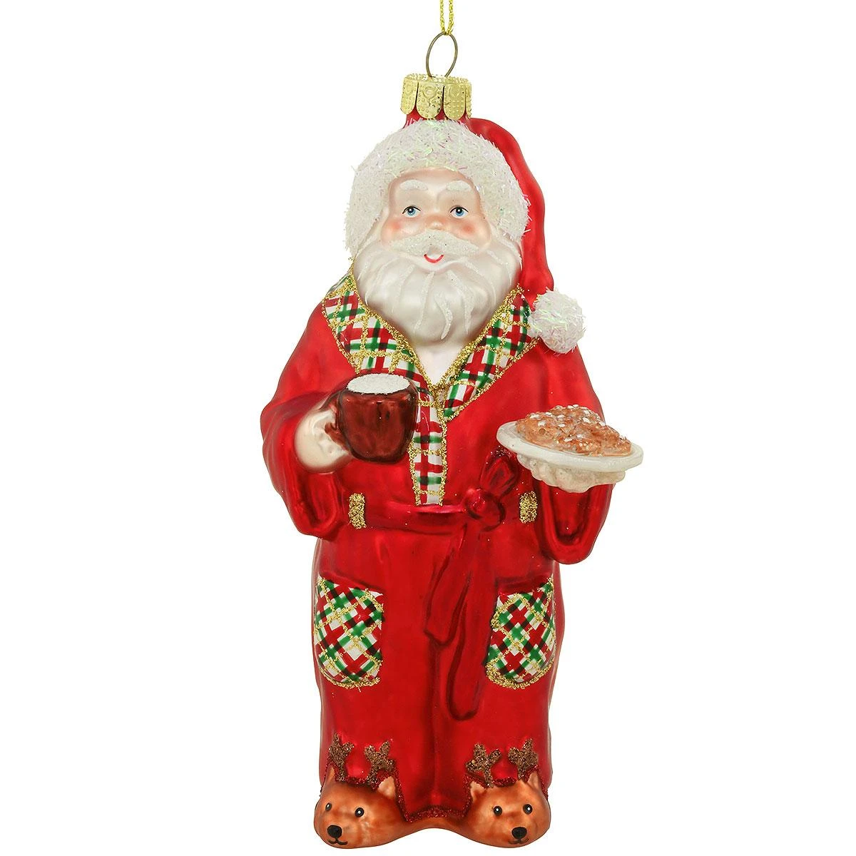 Santa In Robe And Slippers 6 Inch Glass Ornament