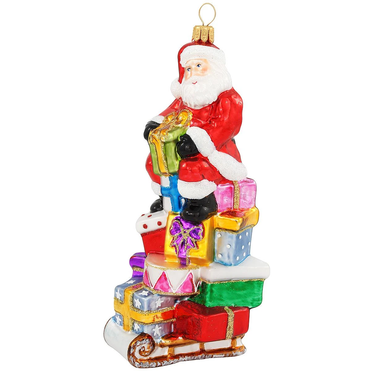 Santa’s riding tall on this festive sled piled high with sparkling Christmas gifts. Skillfully hand-crafted in Poland, this beautiful 6¼” tall ornament shimmers with dazzling glitter and is sure to become a treasured holiday keepsake.