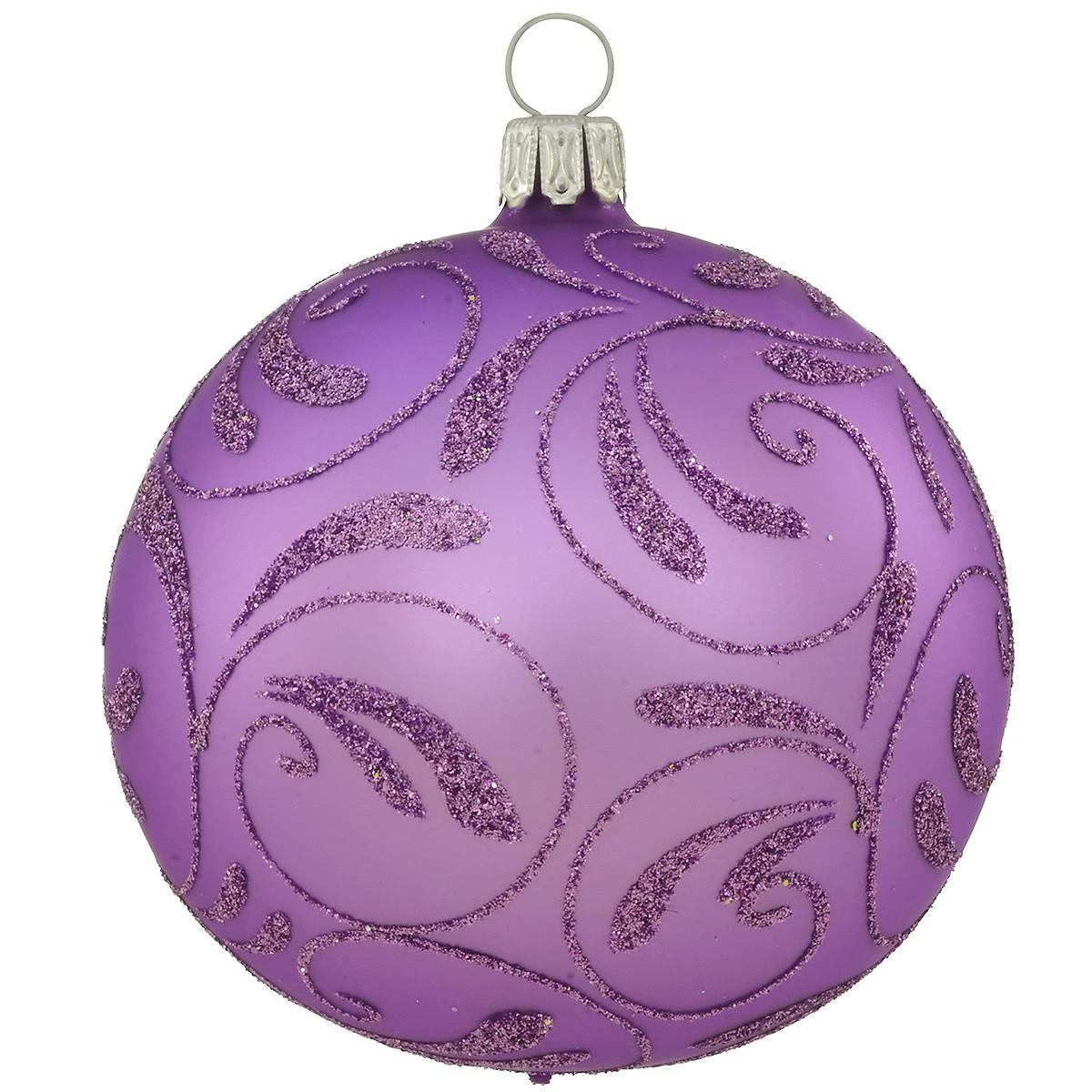 Lovely in lavender, this sensational glass design features a swirling pattern of sparkling glitter leaves that is sure to make a soothing addition to the tree. Skillfully mouth-blown in Germany, this stunning keepsake measures approximately 3″ tall.